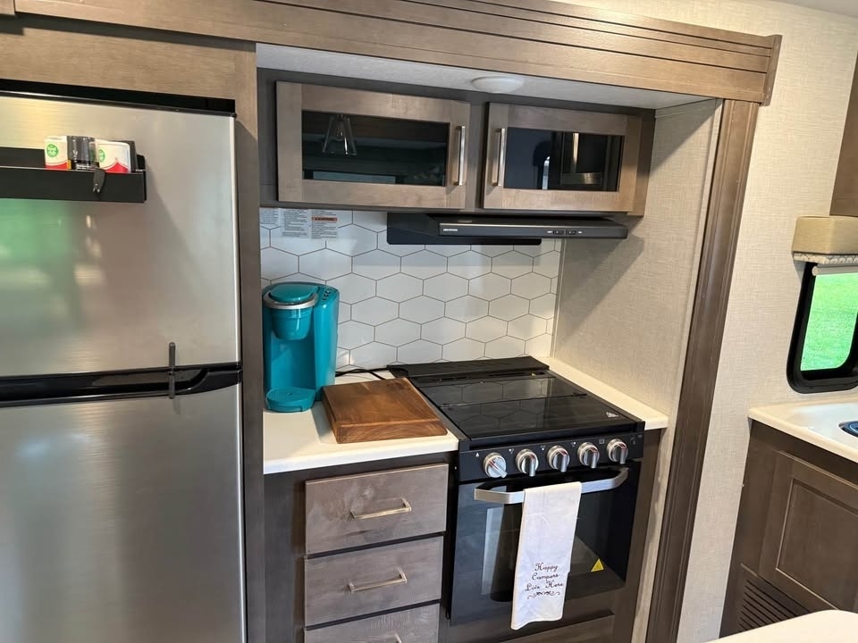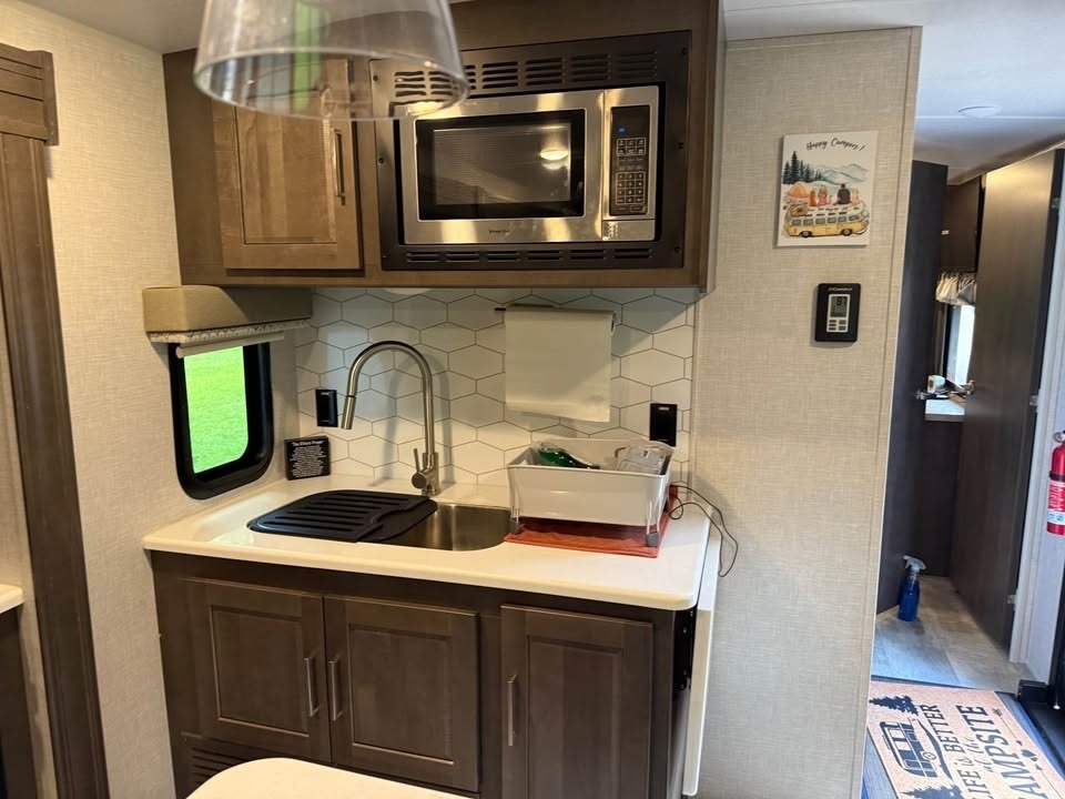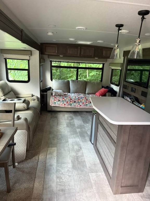 Experience the ultimate in comfort and adventure with the 2021 Forest River Flagstaff 29RLBS, a travel trailer that combines quality construction with a host of features to elevate your camping experiences. This model includes a beautifully designed interior with modern amenities and ample living space. You'll find a fully equipped kitchen with high-end appliances, ample storage, and elegant solid surface countertops, ensuring meal preparation is a breeze. The spacious living area is enhanced by theater seating, a cozy fireplace, and a state-of-the-art entertainment system, perfect for relaxation whether you're parked by the lake or the mountains. The bedroom offers a luxurious queen-sized bed with upgraded bedding and plenty of wardrobe space, providing a restful retreat after a day of outdoor adventures. Experience the convenience of a well-appointed bathroom featuring a large shower with skylight and residential-style fixtures. Built with durable materials and equipped with advanced safety features, this travel trailer is crafted to provide peace of mind and enjoyment for years to come. Whether traversing open highways or nestled at a quiet campsite, the 2021 Forest River Flagstaff 29RLBS is designed to be your home away from home.