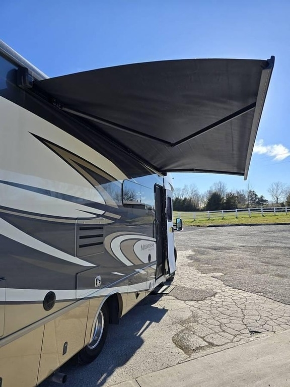 - Exterior & Performance: Full body paint in "Dawn," power awning, heated mirrors, cruise control, tilt steering, and one slide-out.