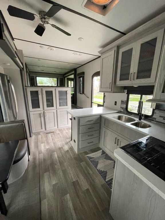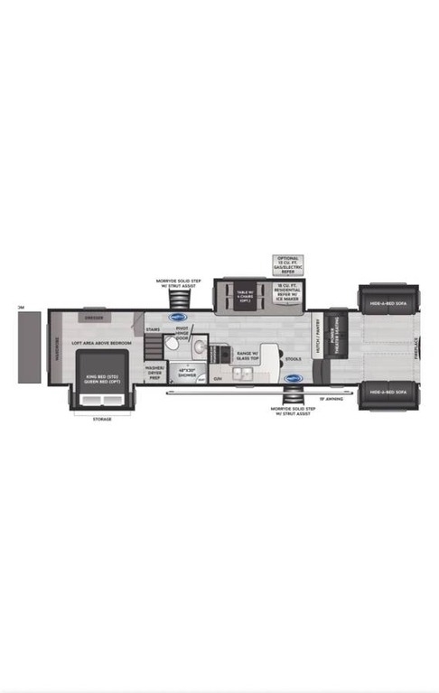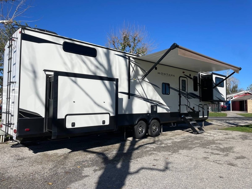 2021 Keystone Montana High Country 377FL This 2021 Montana High Country 377FL fifth-wheel camper offers a premium combination of luxury, space, and functionality, designed for extended travel and comfortable living. Measuring approximately 42 feet in length, this unit features multiple slide-outs that create a spacious interior capable of sleeping between 6 and 10 people. The front living room layout includes convertible couches and power theater seating, while the master bedroom is equipped with a king-size bed and ample under-bed storage. The kitchen is well-appointed with solid surface countertops, a stainless steel sink, and high-quality appliances including a Furrion stove and GE microwave. Additional interior features include LED lighting, central vacuum system, loft space, and integrated entertainment options with a large HD smart TV and KeyTV system. This camper is equipped with dual-pane windows, Lippert automatic leveling, multiple slide awnings, and lithium battery setup, making it ready for extended use. With its clean condition and well-maintained systems, this Montana High Country delivers both comfort and reliability for any travel lifestyle. Located in McKinleyville, CA 95519 For more information, please call 833-265-6113 and mention ID 90846A