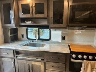 This 2022 Grand Design Transcend Explorer 231 RK is in great condition and features a desirable rear kitchen layout with ample counter space and storage. The travel trailer includes a spacious bathroom, two comfortable reclining chairs, and a large front pass-through storage area. Equipped with a 300-watt solar panel setup (no inverter), backup camera, and side cameras for added safety and convenience. At 23 feet in box length and 29 feet overall including the hitch, it strikes the perfect balance of maneuverability and interior comfort. The sale includes kitchen items, a tire stabilizer, water and sewer hoses—everything you need to hit the road.