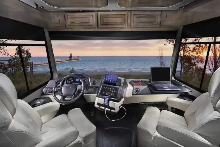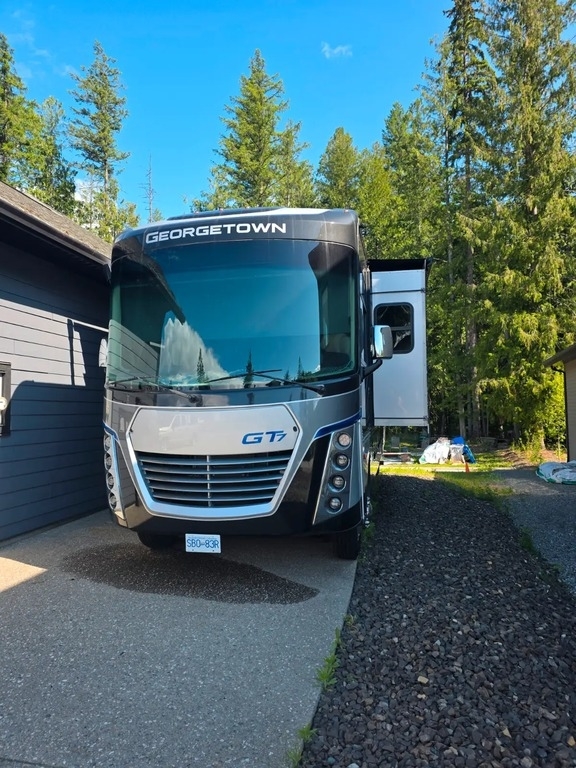 2022 Forest River Georgetown GT7 Class A Motorhome This stunning 2022 Forest River Georgetown GT7 36D7 is a high-end luxury Class A motorhome with only 10,563 miles. Powered by a 350 HP engine, it features full body paint, two slide-outs, Arctic package, 1.5 baths, residential stainless steel appliance package, theater seating, power tilt king bed, washer/dryer, and 7.0 kW Onan generator. Additional highlights include fireplace, outdoor TV and stereo, hydraulic jacks, Wi-Fi gateway, and full smart-control app system. This coach is in like-new condition and loaded with premium upgrades. Located in Revelstoke, BC, Canada V0E2S1