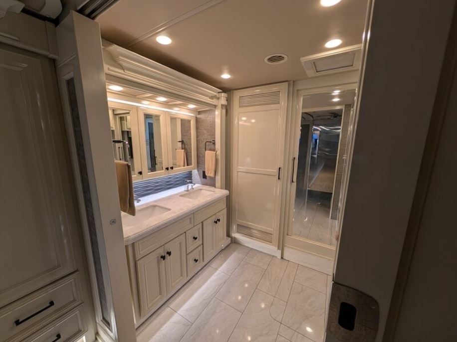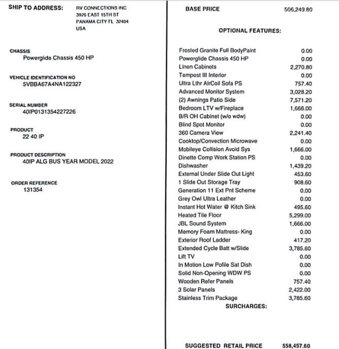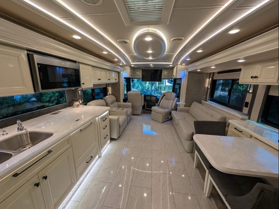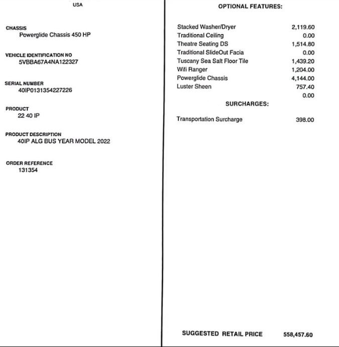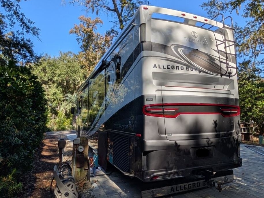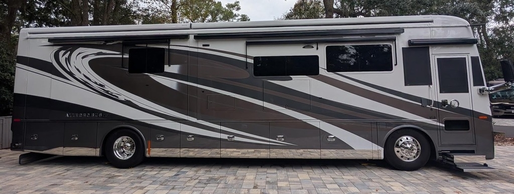 We are pleased to offer this beautiful 2022 Tiffin Allegro Bus 40IP, an exceptional luxury coach that has been meticulously maintained and kept in like-new condition inside and out. Purchased in 2023, it has followed all recommended maintenance schedules, including recent annual preventive maintenance on the engine, Aqua Hot, and generator—completed at Red Bay, Alabama—with no issues noted. All systems are fully operational, and the coach delivers an outstanding driving experience with the premium quality Tiffin is known for. Key features include Tyron Front Tire Flat Protection, snap-on tire and front cab covers, three solar panels, heated floors, and individual washer and dryer units (not a combo). Additional options include stunning Frosted Granite full-body paint, integrated GPS/navigation, and backup and side-view cameras. A complete list of factory options can be found in the spec sheet located in the photo gallery.