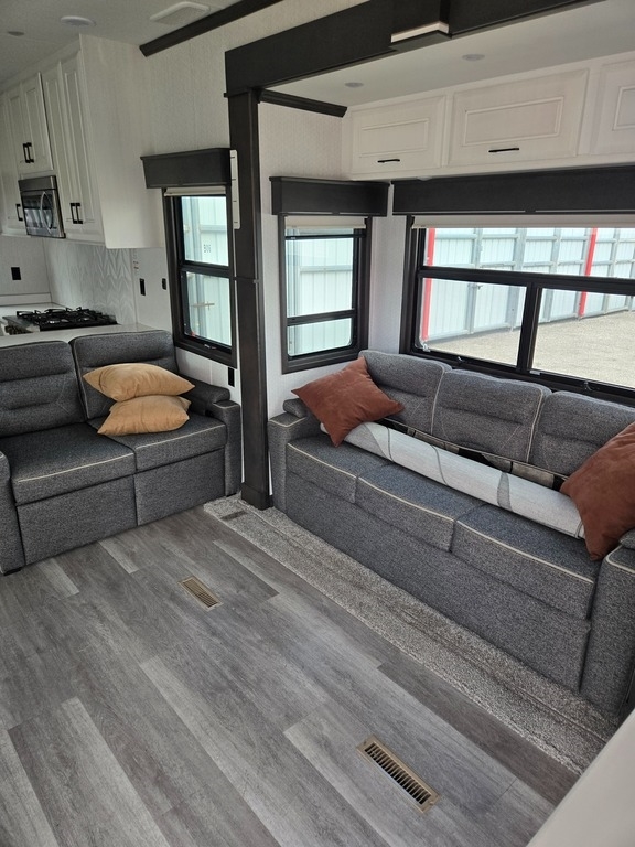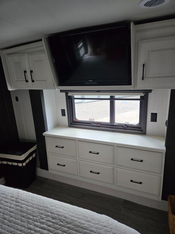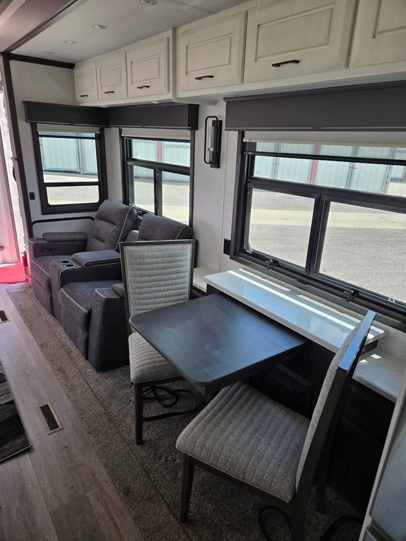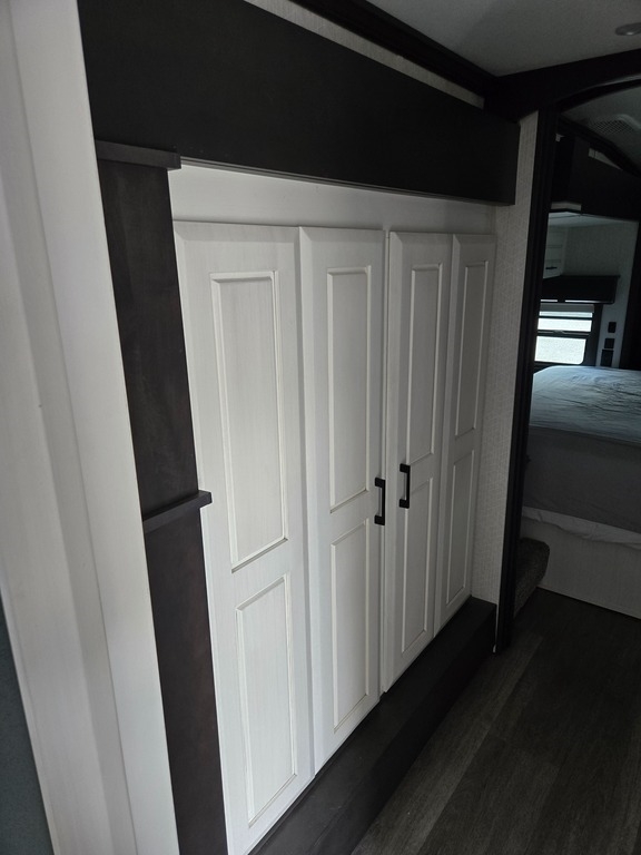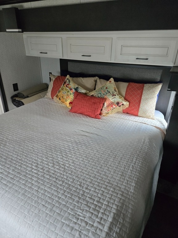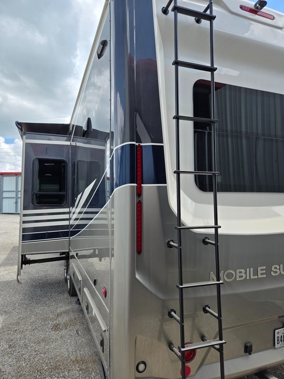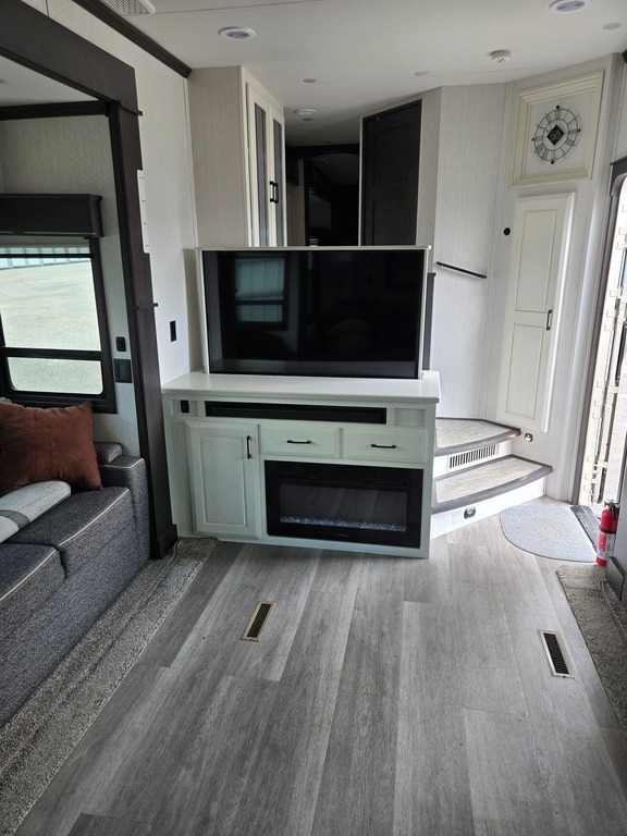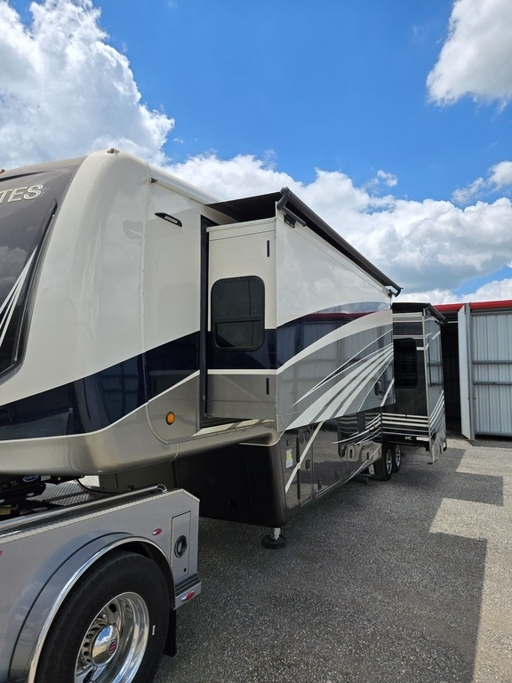 Luxury Fifth Wheel in Like-New Condition Custom ordered and delivered in July 2022, this DRV Elite Suites 41RKSB4 is the ultimate in luxury fifth wheel living. Gently used and stored in an enclosed facility since day one, this coach has been meticulously maintained and winterized every season. If you're looking for residential comfort on the road, this is the one. Key Features: Rear Kitchen Floorplan with spacious layout Custom-made King Mattress – premium comfort for restful nights Residential Refrigerator and Side-by-Side Washer & Dryer Triple A/C Units for superior climate control Queen Sleeper Sofa – perfect for guests Automatic Hydraulic Leveling System Slide-Out Storage Tray in main pass-through compartment 2 Flat Screen TVs throughout the coach On-Command LED Lighting for easy ambiance control Fiberglass One-Piece Roof – durable and leak-resistant Class III Hitch – ready to tow your toys or trailer Fully Enclosed Underbelly – four-season capability Whether you’re planning extended travel or a full-time lifestyle, this fifth wheel blends residential luxury with road-ready functionality. The attention to detail and upgrades make this unit a standout. This is a high-end, well-cared-for coach ready for its next adventure.