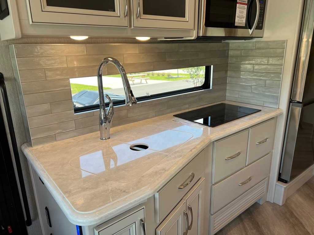 I am excited to offer this beautifully appointed 2022 Fleetwood Southwind 34C Class A RV, designed for immediate comfort camping. With only 9,800 miles on its gas engine, this gently used RV features a king bed in the rear and a queen loft bed for ample sleeping arrangements. Enjoy the cozy ambiance provided by the fireplace, complemented by plank flooring and a convenient washer/dryer combo unit. The kitchen is equipped with a residential refrigerator and a microwave/convection oven, ensuring you have everything you need for meal preparation. The exterior showcases a stunning full body paint in shades of blue, silver, gray, and black, along with an electric patio awning and two slide-outs for added space. Utility features include 50-amp service, four televisions, backup and side cameras, and heated mirrors. Additionally, a Roadmaster tow bar is included, along with generous storage options and other extras. This RV combines the comforts of home with easy drivability. Located in Coronado, CA 92118 For more information, please call 833-265-6113 and mention ID 68101750