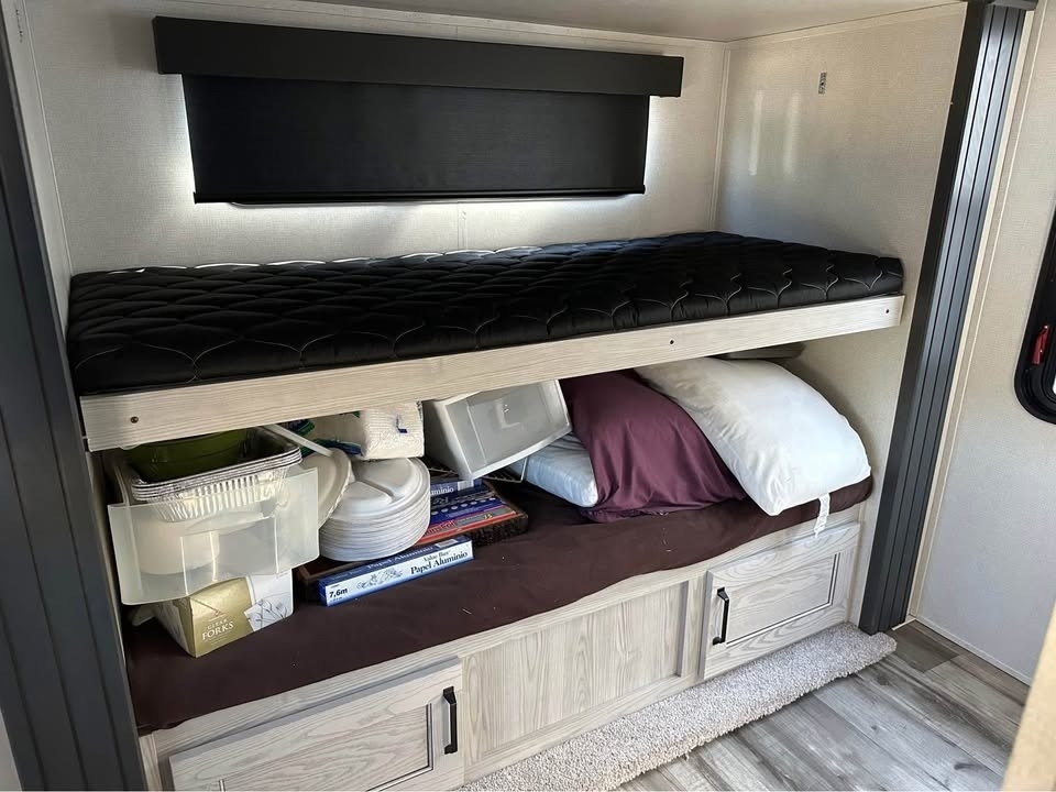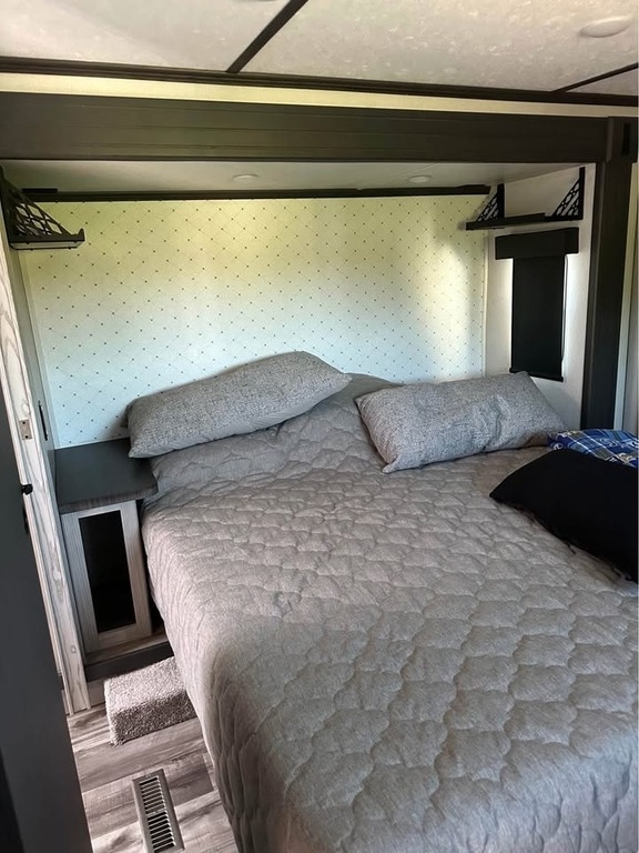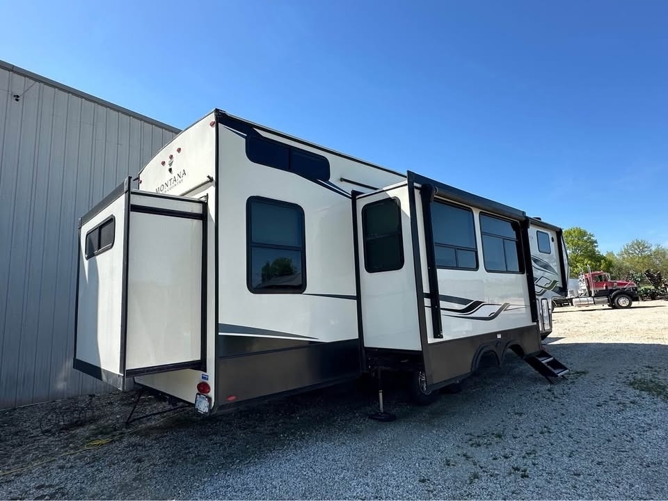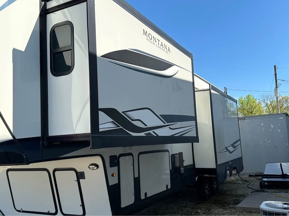 2022 Keystone Montana High Country This 2022 Keystone Montana High Country 335BH is a spacious and well-designed fifth wheel that offers luxury comfort and family-friendly functionality. Having only been used twice since new, it remains in excellent condition and ready for travel or extended stays. The layout features a front master bedroom connected to a full bathroom, providing privacy and convenience. The central living and kitchen area includes a residential-size refrigerator, large pantry, coffee bar, kitchen island with sink, dining area, reclining loveseat, fireplace, and television, creating a comfortable gathering space. Above the rear section is an upper loft area that provides additional sleeping space. The rear of the unit features bunk beds and a convenient half bathroom, making it ideal for families or guests. Additional features include solar panels, heated holding tanks for extended season camping, generous storage compartments, and washer and dryer hookups for long-term stays. This Montana High Country offers the comfort of home with the flexibility and adventure of RV travel. Located in Basehor, KS 66007 For more information, please call 833-265-6113 and mention ID 85362