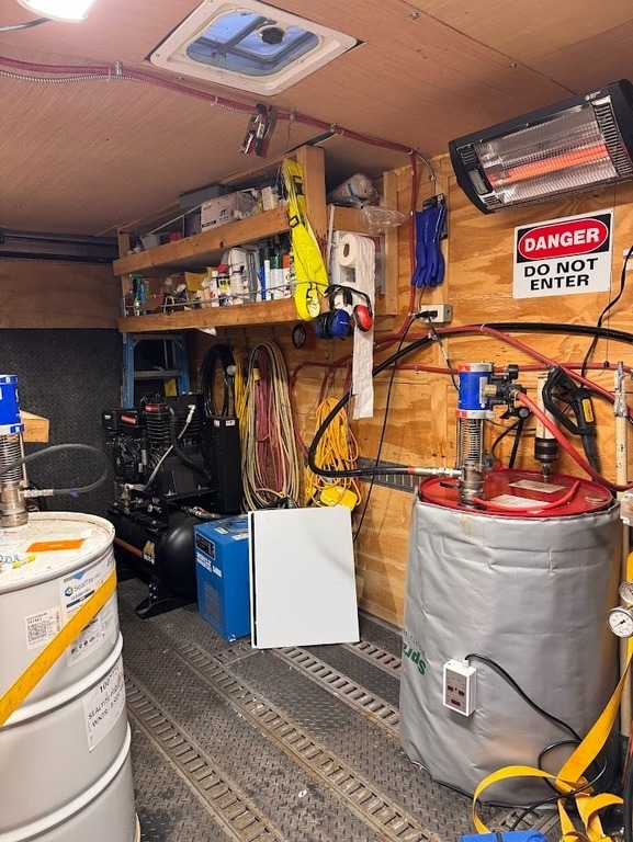 This 2022 Spartan Spray Foam Insulation Rig is a turnkey setup designed for professional insulation contractors looking for a reliable, well-maintained system ready to go to work. The rig is built into a 2022 Spartan 17’ double-axle enclosed trailer and is equipped with a PH-2 spray foam machine, 150-foot heated hose, Graco T3 pumps, and a Schulz ADS air dryer for consistent performance. Power is supplied by a Winco gas generator, supported by a Mi-T-M 420 Series gas air compressor. The trailer features an insulated ceiling with dual electric heaters, electric lighting, interior outlets, and 50-foot external plug-in capability for added versatility. Inside, the unit includes built-in shelving for materials and equipment supplies, along with a hinged workstation that closes to allow easy generator servicing. The equipment has been serviced and maintained according to specifications, with electric brakes still at approximately 50%, and all axle bearings greased last summer. With only 18 sets of barrels sprayed through the system, this rig is in like-new condition and ready for immediate use in the field.