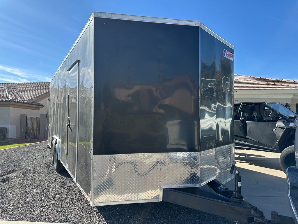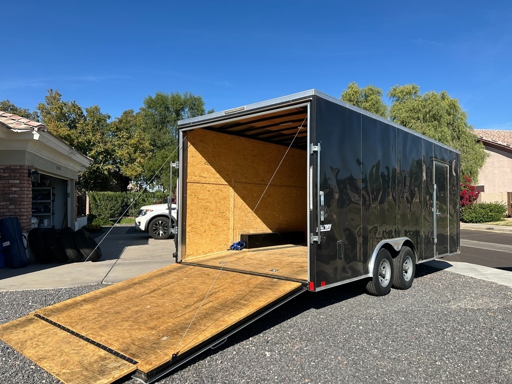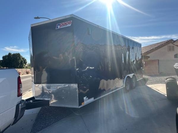 This 2023 Pace enclosed 8.5 ft x 20 ft trailer is a spacious and versatile hauler built for low cars, equipment, or general cargo. It features a 9,990-lb GVWR with dual 5,200-lb axles and a massive rear ramp flap designed to reduce the approach angle, making it easy to load low-profile vehicles without scraping. A large side escape door provides convenient access once a car is inside, and the interior height of 7’6” offers excellent clearance for taller cargo. Tie-downs are already mounted inside for secure transport. The trailer also includes custom LED lighting with interior switches that can run off a 20V Dewalt battery, making it easy to use lighting anywhere without needing shore power. Clean title in hand.
