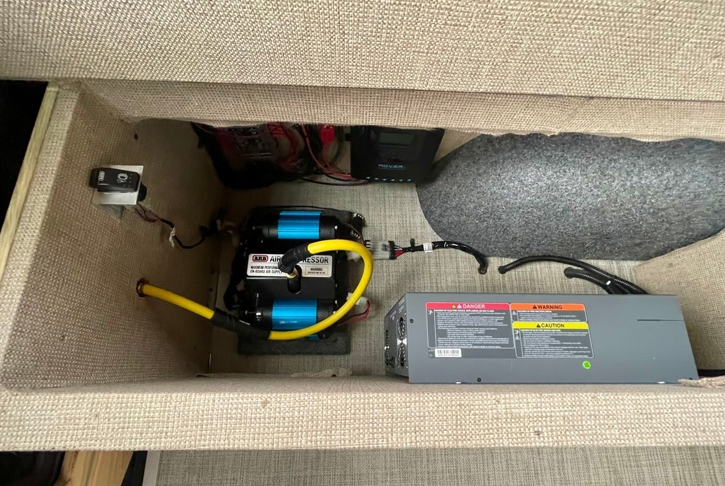 Additional items such as 15-amp shore power and portable solar panel hook-ups, engine block heater, Agile Off Road Suspension with new Falcon Wildpeak AT4W tires (with ~5,000 miles on them) for quieter road ride and off-roading capability, ARB dual air compressor, bug screens, and BluTech water filtration system.