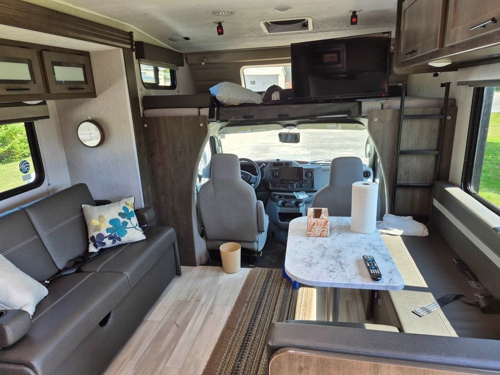 This 2023 Coachmen Leprechaun 620DS Class C Motorhome is fully furnished and road-trip ready, offering comfort, convenience, and style in a compact, easy-to-drive package. It comes completely stocked with pots, pans, dishes, silverware, and all the essentials you need to hit the road right away. The interior features multiple entertainment options, including three TVs—one in the living room, one in the bedroom, and an outdoor TV paired with a stereo system for relaxing under the awning. The motorhome also boasts a full camera system for enhanced visibility and safety, making it ideal for both seasoned RVers and first-time adventurers. Whether you’re camping, traveling, or living full-time, this Leprechaun has everything you need.