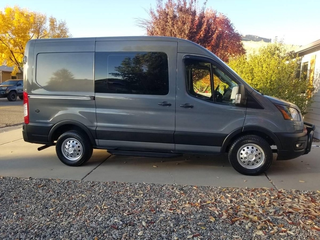 2023 Ford Transit 150 AWD This AWD 2023 Ford Transit 150 features a mid-roof with a 130" wheelbase and is set up for travel with solar power and EcoFlow battery systems. It has privacy-tinted rear windows, new all-weather tires, and recent servicing. Interior includes practical accessories such as fridge, heater, cooktop, propane setup, and magnetic bug screens. Drives and looks great with a clean title and no accidents. A versatile adventure or work van. Located in Palisade, CO 81526 For more information, please call 833-265-6113 and mention ID 71182