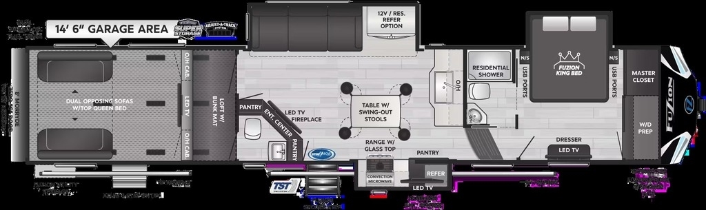 With so many features and upgrades, there are simply too many options to list! This Keystone Fuzion 427 is designed for those who seek adventure without sacrificing luxury. Don’t miss your chance to own this incredible toy hauler—contact us today for more details, to schedule a viewing, or to arrange a test drive! Your next adventure awaits!