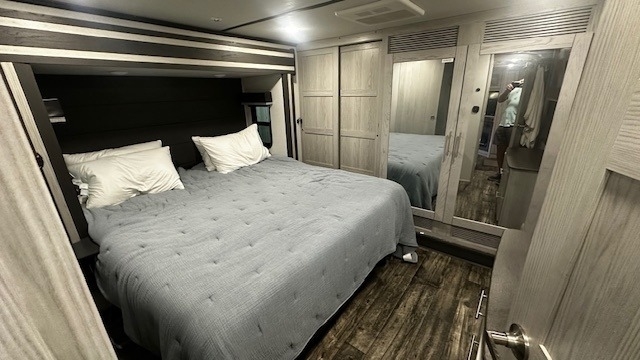 One of the standout features is the onboard generator, which has never been used, providing you with the peace of mind that you'll have power wherever you go. The Fuzion 427 includes three spacious slide-outs that expand your living area, while three power awnings provide ample outdoor space to relax and enjoy the fresh air. The advanced 6-point leveling system ensures stability and ease of setup, no matter the terrain, making your camping experience smoother and more enjoyable.