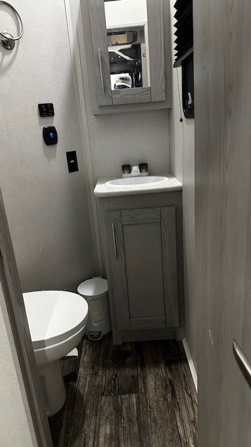 The garage area is not just functional; it features push-button drop-down bunks, providing extra sleeping space for guests or kids, and an outdoor patio area that makes for a perfect entertainment spot. With three flat-screen TVs and a premium home theater sound system, you can enjoy movie nights and gaming sessions just like at home. The master suite features a king bed for ultimate comfort, while the two bathrooms add convenience for larger families or groups.