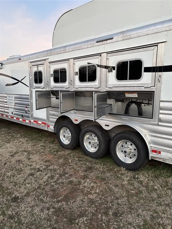 Experience the pinnacle of horse transportation with the 2023 Platinum Coach 4Horse Side Load trailer. This expertly crafted vehicle boasts an innovative side-load design, providing easier access for your horses and optimizing internal space. Constructed with high-quality materials, it ensures durability and a long lifespan. The trailer's spacious interior is carefully designed to offer maximum comfort for your horses, with ample ventilation and lighting. Safety is paramount, with reliable tie-down systems and secure stall dividers that accommodate horses securely while minimizing movement. Advanced suspension technology guarantees a smooth ride, reducing stress on your horses during long journeys. Additionally, the trailer includes modern conveniences such as integrated storage solutions for tack and gear, reflective safety markers for improved visibility, and a sleek exterior design that upholds both functionality and aesthetics. Whether for professional or recreational use, this side-load horse trailer is engineered to meet the highest standards of quality and performance.