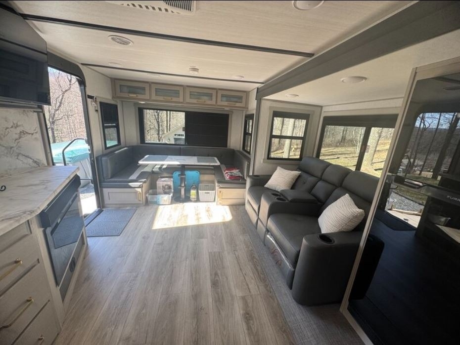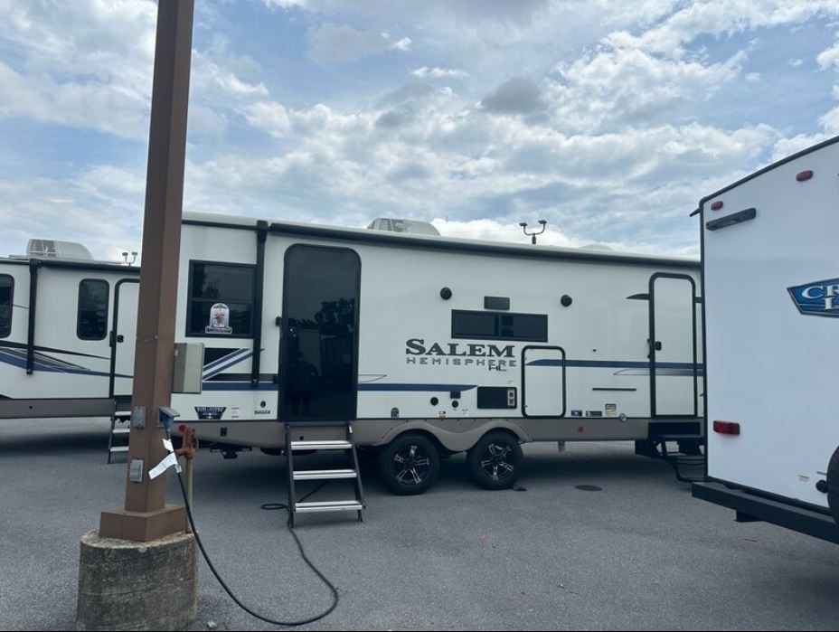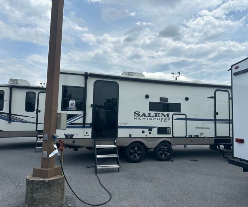 This 2024 Forest River Salem Hemisphere Hyper-Lyte (Model SBT24RDHL) is a lightly used, single-owner trailer purchased new in July 2024 and taken on only three trips. The trailer includes an equalizer sway control hitch, auto-leveling device, brand-new cover, travel/backup camera, tire-pressure monitors, and all hoses, cables, and surge protector. Inside, it offers a bright, open living and dining area with plenty of storage, tinted windows with louvered shades, dual recliner sofa that lays flat, 40" TV, and an electric fireplace with adjustable flame and heat. Also includes an exterior fridge and a well-designed kitchen layout. No pets, no smoking, and fully winterized for the season. A clean, modern trailer ready for immediate use. Local pick up and or shipping. Located in Fairfield, PA 17320 For more information, please call 833-265-6113 and mention ID 85213