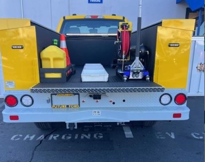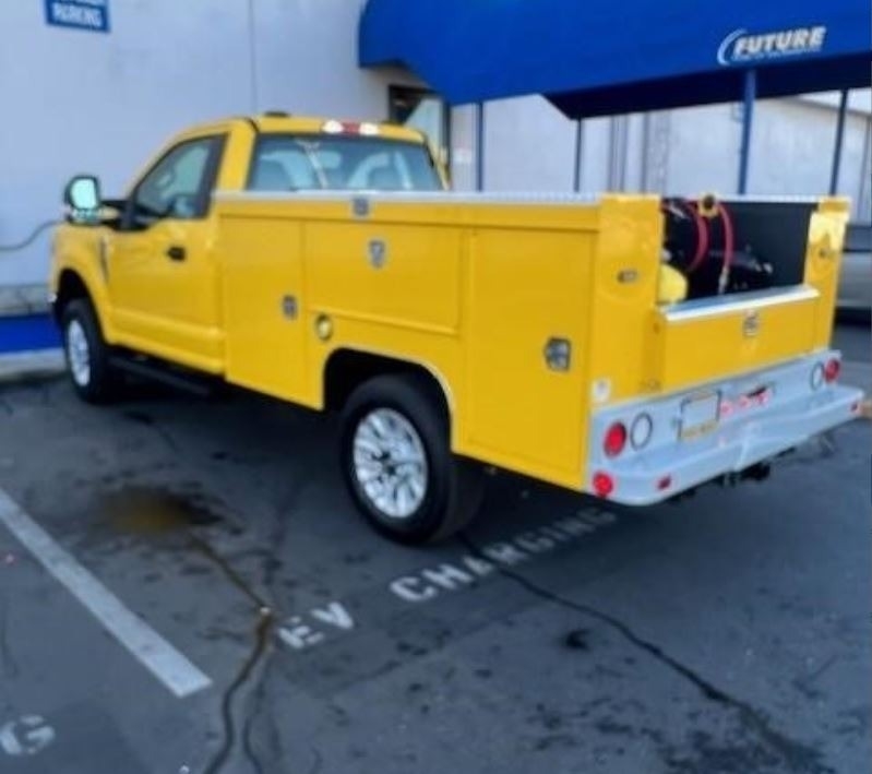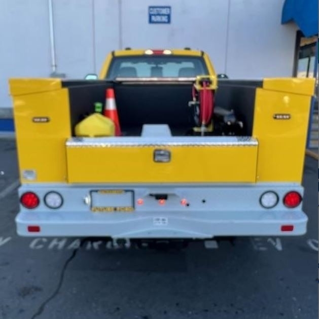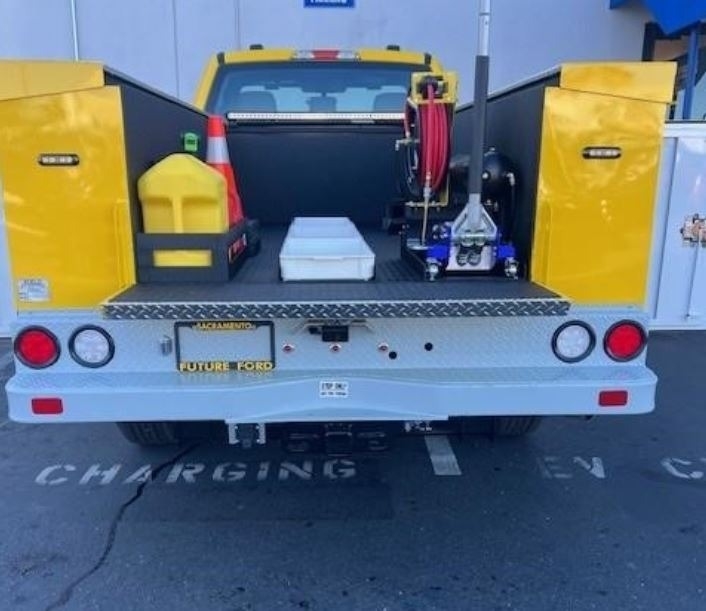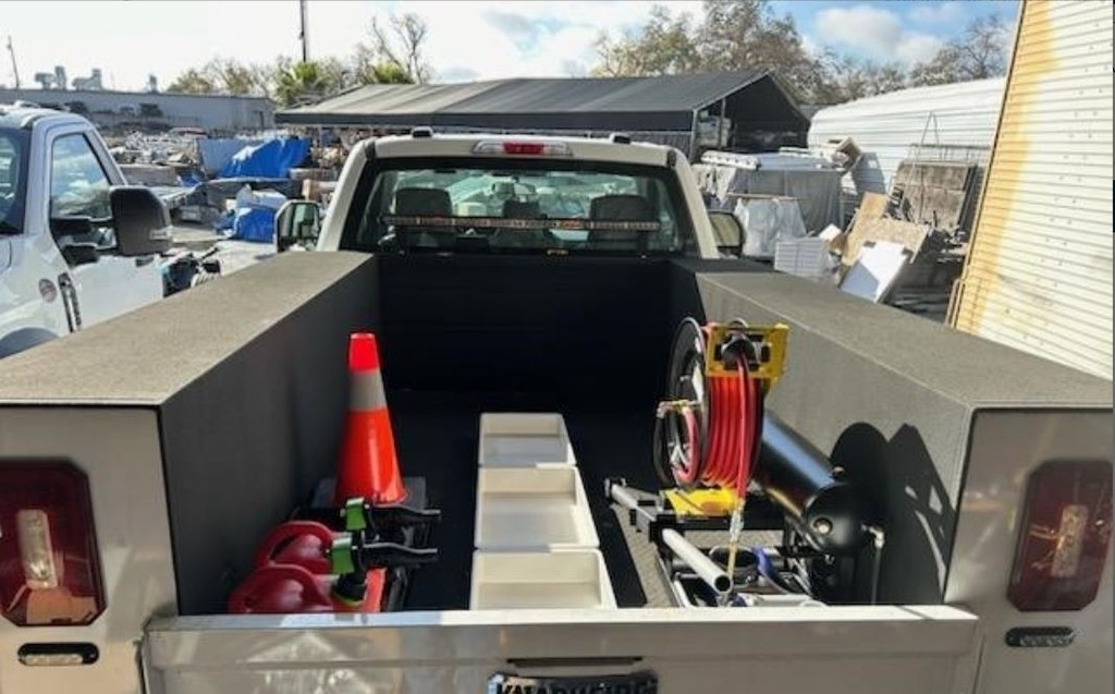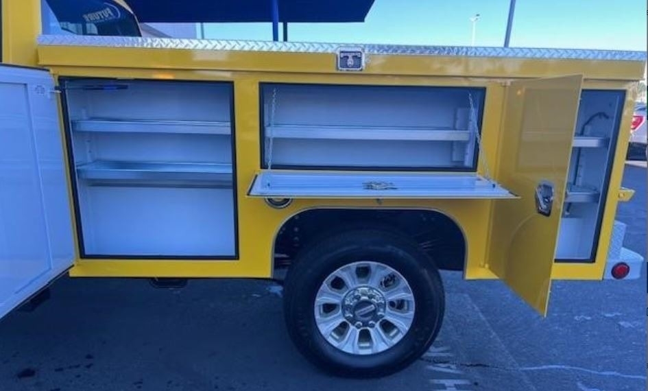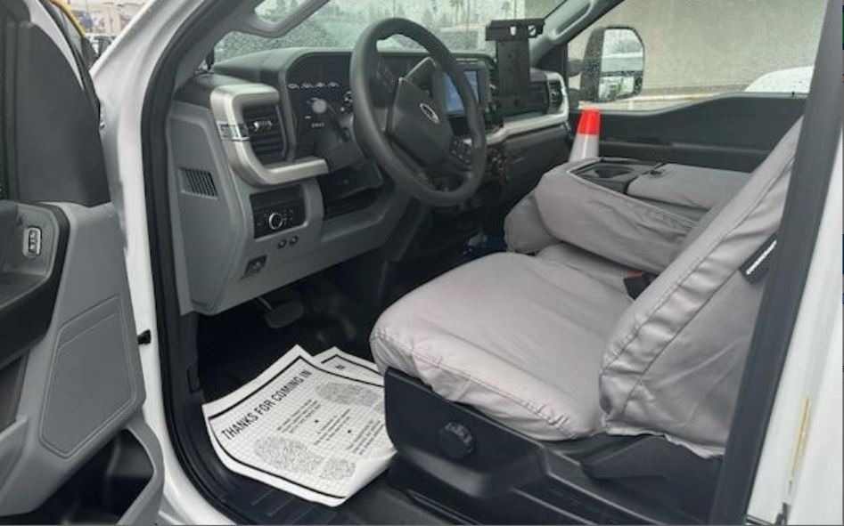 The 2024 Ford F-250 Super Duty 4x2 XL 2dr Regular Cab 8 ft. LB Pickup is a fully equipped work truck that is ready for any job. It comes with a Knapheide body loaded with essential tools and equipment, including a 50-foot air hose reel, a 2.5-ton jack, jack stands, chocks, and (4) 18" safety cones for safety on the road. Additional features include six strobes, a directional light in the rear window, and various storage trays for batteries or other items. It also comes with a flush mount hot box, 25-foot jumper cables, road flares, a lug wrench, and two 2-gallon red plastic fuel containers along with a 5-gallon yellow diesel container. The truck is equipped with an air compressor, safety triangles, a tablet mount in the dash, eye wash solution, a first aid kit, and spray bed liner. Safety is prioritized with both a 2.5lb and a 5lb fire extinguisher included. Please note that the truck is white, although some photos may show a yellow-painted truck for body and equipment purposes— the build is identical. This Ford F-250 is ready to tackle any worksite with all the tools you need on hand.