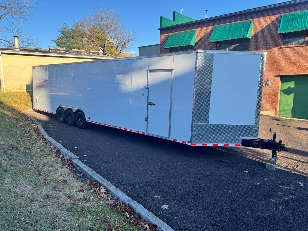 This 36ft enclosed trailer is in excellent condition, having been purchased in January 2025. With a GVWR of 21,000 lbs and each axle rated for 7,000 lbs, it is built for durability and performance. The trailer has seen limited use, ensuring it pulls straight and remains a reliable choice. It has the capacity to accommodate two standard vehicles or three smaller ones. The trailer brakes are functioning optimally, and there is plenty of tread life remaining on the tires. Located in Hatfeild, PA 19940 For more information, please call 833-265-6113 and mention ID 201007.