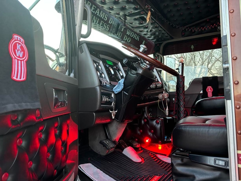 For sale is a 2024 Kenworth W900L Conventional Sleeper Semi, powered by a 565 HP Cummins X15 engine delivering 2050 lb-ft of torque and paired with an 18-speed transmission. This long-haul workhorse features a factory 300-inch wheelbase and a 3.25 gear ratio, offering both performance and comfort. The truck has 300,000 miles and counting, and rides on XDN 2 Michelin drive tires with 60% tread remaining and brand-new Michelin 16-ply steer tires. Finished in a striking Legendary Brown with a coral red frame, it also boasts a 285-gallon fuel capacity and is equipped with premium Sears Atlas seats for maximum driver comfort. This W900L is built for the road and ready to keep running strong.