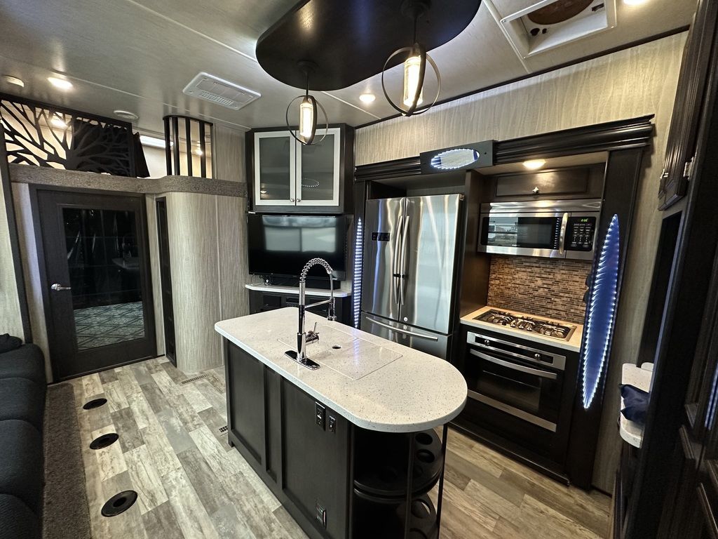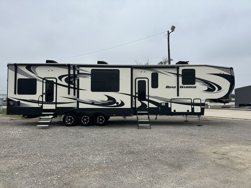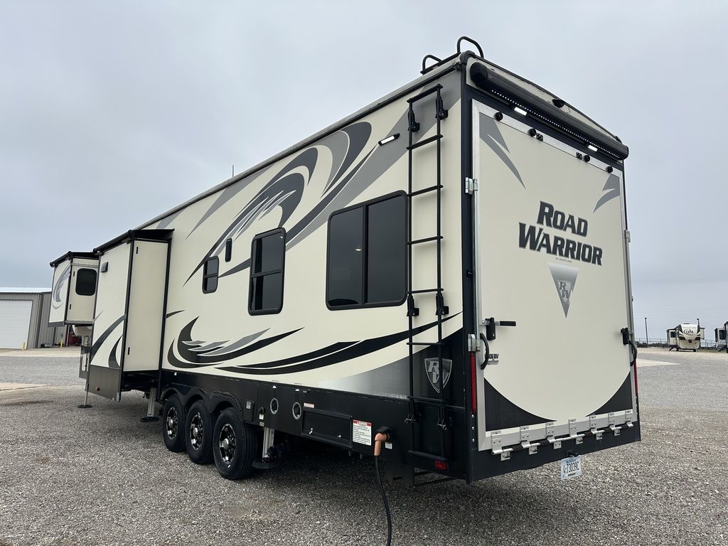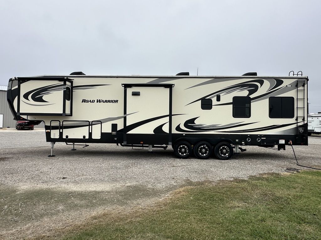 Road Warrior Multi-Lifestyle Vehicles by Heartland combine all the best that fifth wheel RVing has to offer with the versatility of a toy hauler. ROAD WARRIOR offers unique floorplans, each providing the ultimate in interior spaciousness. Amish-crafted cabinets and residential solid surface counter tops for a truly luxurious look and feel. Elegant furnishings including LED lighting, hard sided window valances, night shades and built-in entertainment centers provide a unique touch you might not expect in a toy hauler. Road Warrior owners really enjoy amazing scenic views through oversized windows in the living areas.