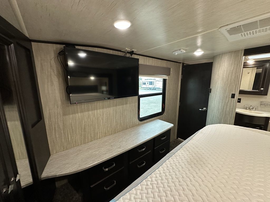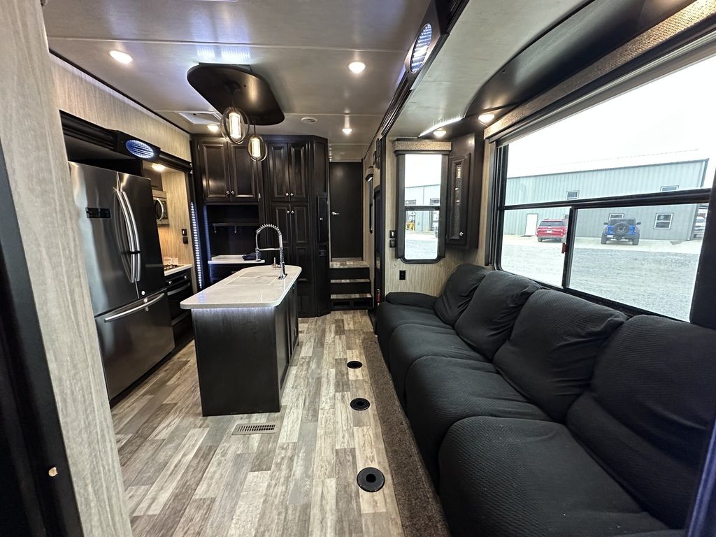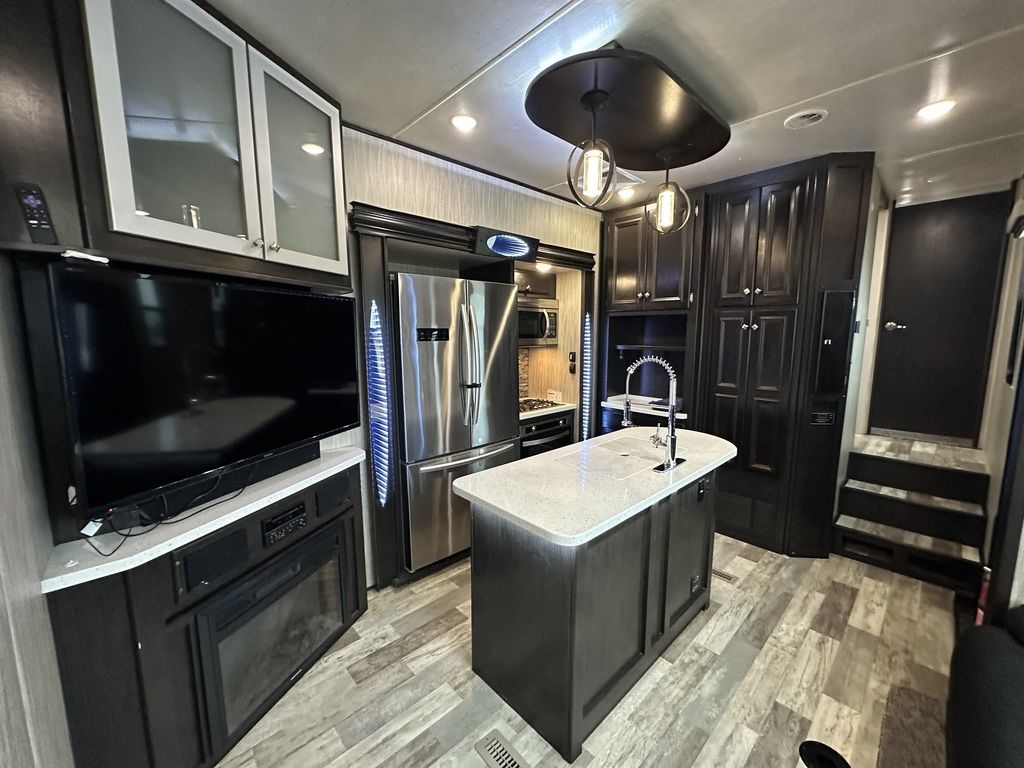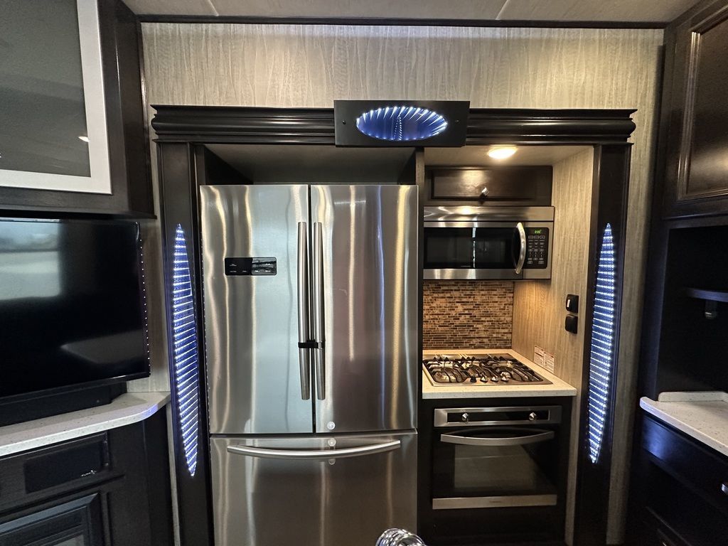 Road Warrior Multi-Lifestyle Vehicles by Heartland combine all the best that fifth wheel RVing has to offer with the versatility of a toy hauler. ROAD WARRIOR offers unique floorplans, each providing the ultimate in interior spaciousness. Amish-crafted cabinets and residential solid surface counter tops for a truly luxurious look and feel. Elegant furnishings including LED lighting, hard sided window valances, night shades and built-in entertainment centers provide a unique touch you might not expect in a toy hauler. Road Warrior owners really enjoy amazing scenic views through oversized windows in the living areas.