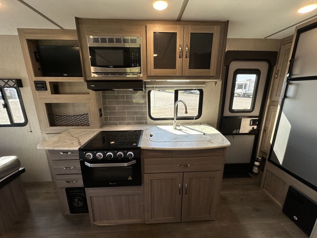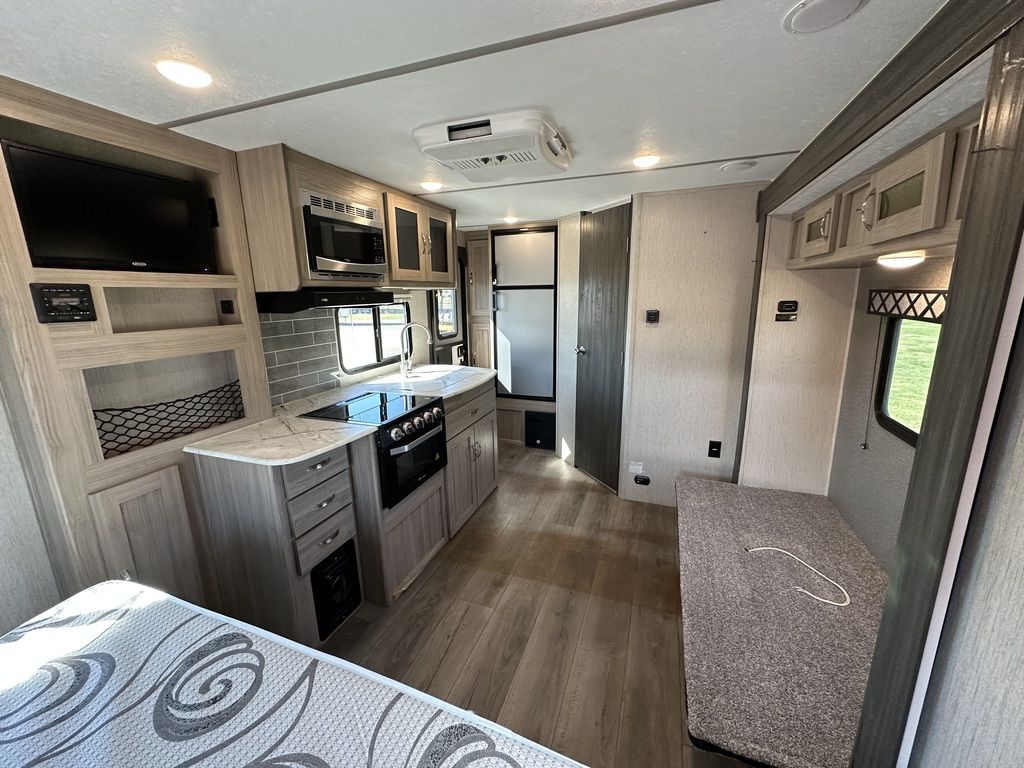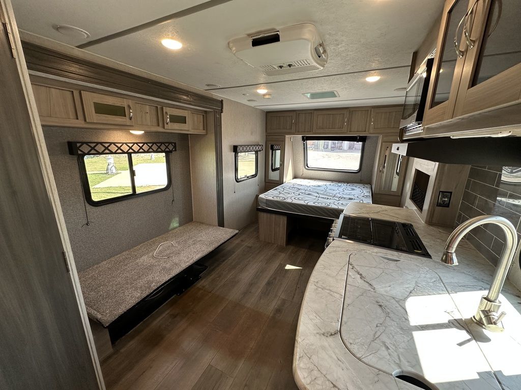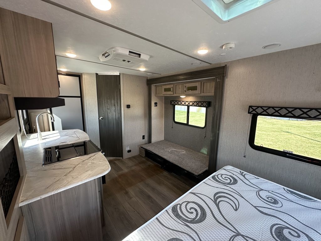 Freedom Express conventional and hybrid travel trailers boast vacuum-bond laminated sidewalls with durable Lami-Lux 1000® fiberglass exteriors backed with Azdel. Available in models from 18’ to 28’, you are sure to find a model that suits your style, whether you are going it alone or taking the whole family.