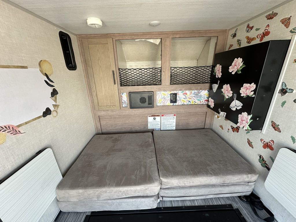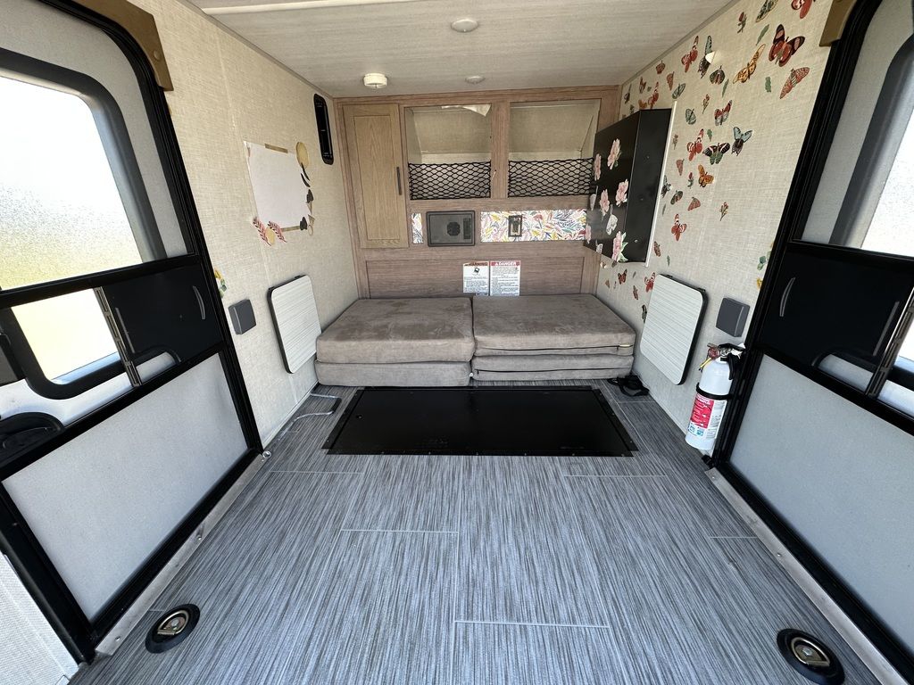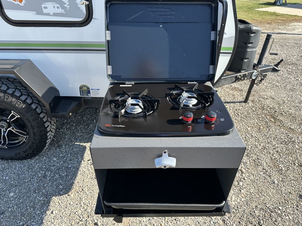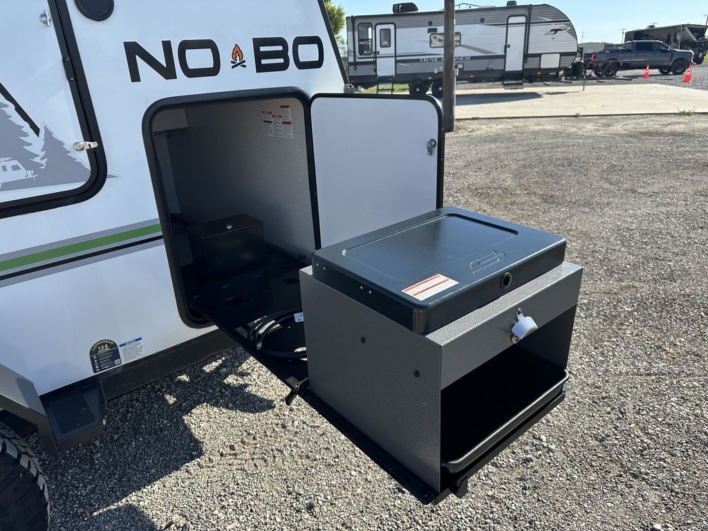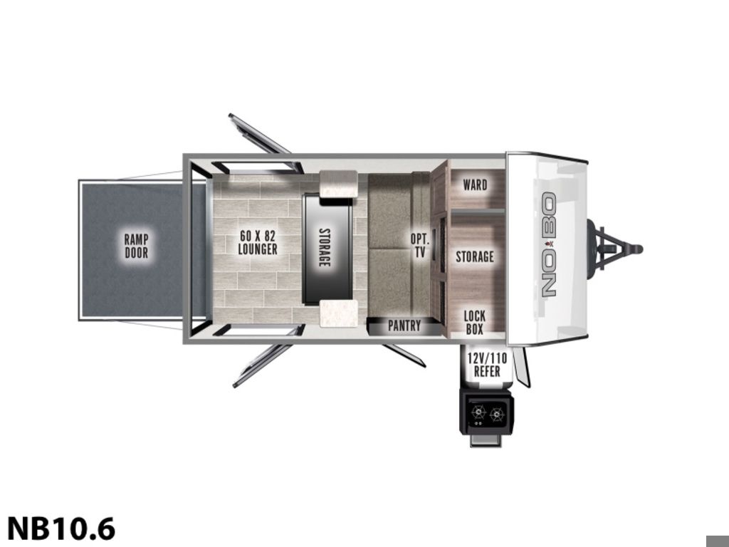 Go anywhere and bring anything – even your full-sized four-wheeler. Packing a rear ramp door, this sub-2000 trailer is complete with a laundry list of available features, including wrap-around awning, 12V/110 refer, 60x82 queen bed, industry exclusive Rhino Rack Roof Rack Equipment, NoBo Nest Rooftop Tent, and the most ground clearance in its class!