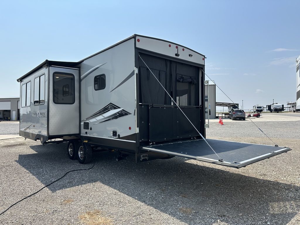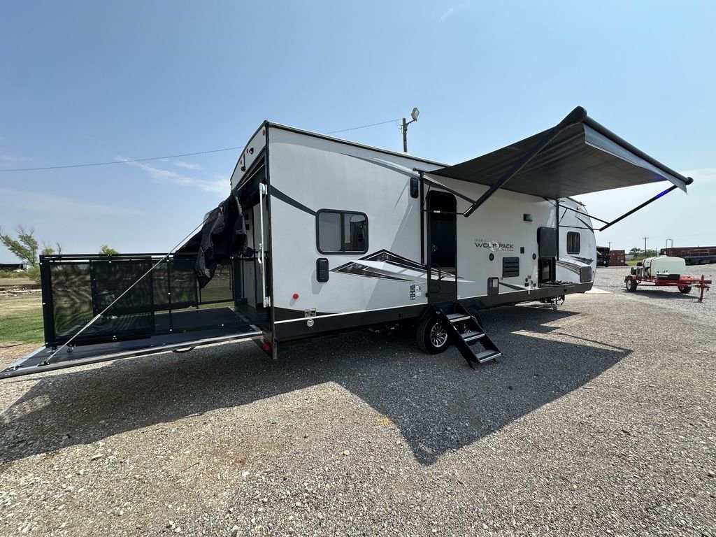 Your search is over! You have found the most affordable and versatile, full-featured toy hauler bunkhouse on the market! Why do we say bunkhouse? Because the Cherokee Wolf Pack is a toy hauler that converts to a bunkhouse in a matter of minutes. In fact, approximately half of Wolf Pack customers are bunkhouse buyers looking for more sleeping room and versatility in their unit. The Wolf Pack is not always a toy hauler or a bunkhouse. It is whatever you need it to be for the trip you are about to take. If your family likes to take a golf cart, motorcycles, ATV’s, bicycles, kayak’s, coolers, grills, firewood and all the other camping staples, but doesn’t like to take the second vehicle to get it there, look no further than the Wolf Pack! Versatility is the name of the game!