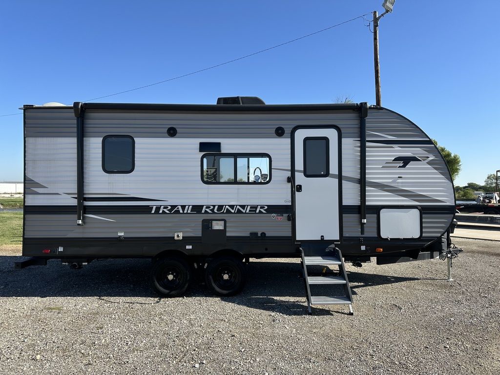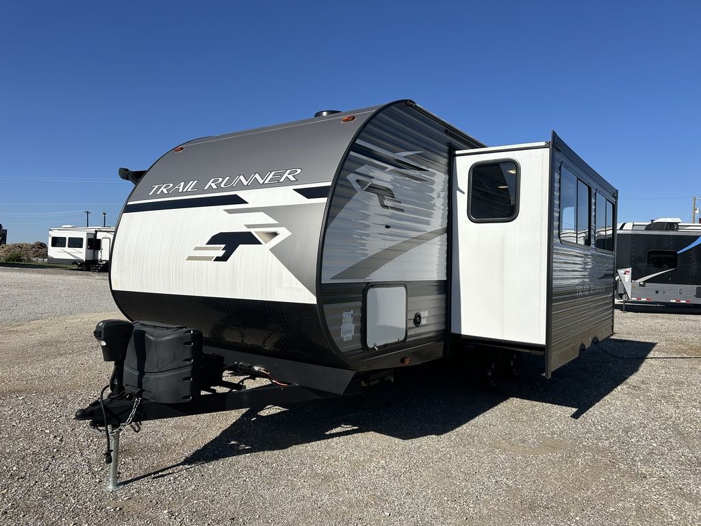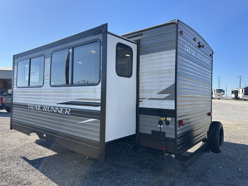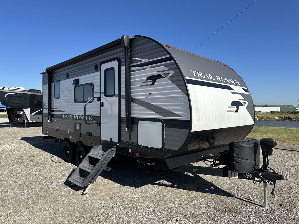 The Heartland Trail Runner RV is a travel trailer loves to run, and you’ll be right there with it once you see all it has to offer. Get the extra room and the amenities that you need within your budget. The Trail Runner travel trailer RV's features like open floor plans and deep slide-outs with easy- clean woven flooring make the space comfortable and hypo-allergenic. Plus, a griddle in the outdoor kitchen means you’ll be cooking in style.