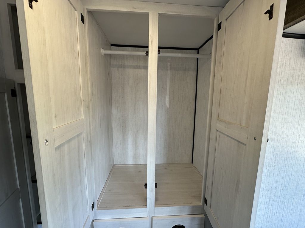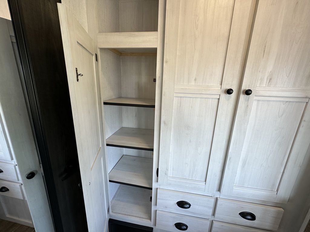 Interior- Master Suite – Residential 60"x 80" queen bed , oversized wardrobes, built in CPAP storage, and wireless cell charging stations