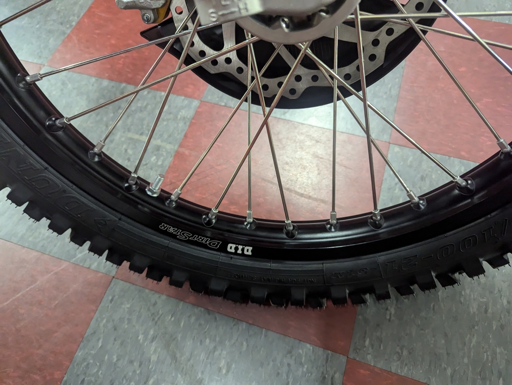 • Front Tire (Full Spec): Dunlop Geomax MX33: 80/100-21