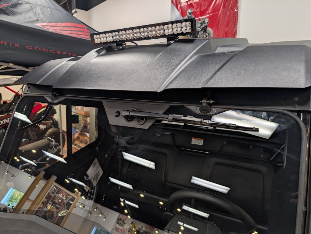 Fully enclosed with Honda genuine parts including: Hard Doors with Mirrors, Rear Panel, Glass Tip-Out Windscreen, Cab Heater and Wiper Kit. This 700 also includes a 20 Light-Bar, Dome Light inside the enclosure, as well as a 4500lb Warn Winch connected to a 72" Honda Plow Blade. Engine Type: Single-Cylinder