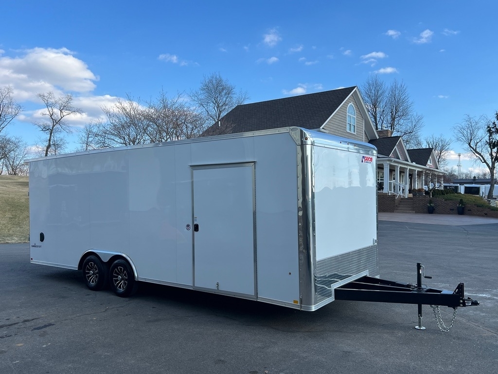 STOCK #: 141083VIN #: 5JWPC2423TM141083· NEW 2026 PACE CARGOSPORT 8.5' X 24' 10K GVWR RACE CAR HAULER ENCLOSED TRAILER· MODEL: KP-VIBR10224-100· 8.5' WIDE X 24' LONG X 7' INTERIOR HEIGHT· (6' 10" DOOR HEIGHT CLEARANCE)· GVWR: 9,900 LB· EMPTY WEIGHT: 3,703 LB· PAYLOAD CAPACITY: 6,197 LB· EXTERIOR COLOR: WHITE SCREWLESS· - AXLE -· (2) 5,200 LB INDEPENDENT TORSION SUSPENSION AXLES· ELECTRIC BRAKES ON ALL WHEELS· SUPERLUBE HUBS· - TIRES -· ST225/75R15D 8-PLY RADIAL TIRES· 6-LUG 15" ALUMINUM WHEELS (CLEAR COATED)· CHROME CENTER CAPS & LUG NUTS· - HITCH -· 5' EXTENDED TRIPLE-TUBE TONGUE W/ 2-5/16" ADJUSTABLE COUPLER· SET-BACK TONGUE JACK· 7-WAY RV MOLDED PLUG· SAFETY CHAINS· BREAKAWAY KIT W/ CHARGER· - FRAME -· REAR WING (SPOILER)· STORAGE COMPARTMENT IN FLOOR· STEEL UNI-BODY CONSTRUCTION· 6" TUBE MAIN FRAME RAILS· 16" ON-CENTER FLOOR CROSS MEMBERS· 16" ON-CENTER WALL POSTS· 16" ON-CENTER ROOF BOWS· UNDERCOATING ON LOWER FRAME· - VENTS -· (1) ROOF VENT - BRACED & WIRED FOR FUTURE A/C· (2) FLOW THRU SIDEWALL VENTS· - INTERIOR -· WHITE VINYL CEILING W/ ANGLED COVE EDGES· 3/8" WHITE VINYL BOARD INTERIOR WALLS· 3/4" DRYMAX FLOOR· (4) HEAVY DUTY RECESSED D-RINGS· - 12 VOLT ELECTRICAL -· (2) 12 VOLT L.E.D. INTERIOR LIGHTS W/ WALL SWITCH AT SIDE DOOR· (2) 12 VOLT L.E.D. LOADING LIGHTS W/ WALL SWITCH AT REAR· 110 VOLT TO 12 VOLT 45 AMP POWER CONVERTER· L.E.D. TAIL LIGHTS W/ INTEGRATED BACKUPS· L.E.D. CLEARANCE LIGHTS· - EXTERIOR -· SCREWLESS .030 ALUMINUM EXTERIOR· ONE-PIECE ALUMINUM SEAMLESS ROOF· ALUMINUM TREAD PLATE STONE GUARD· POLISHED ALUMINUM FRONT CORNERS & TOP WRAP· POLISHED CAST ALUMINUM UPPER FRONT CORNERS· POLISHED ALUMINUM REAR HOOP· 2-3/4" ALUMINUM TOP RAIL & BOTTOM RAIL· ALUMINUM FENDER FLARES· - DOOR -· 48" RV SIDE DOOR W/ RV LOCK/DEADBOLT & ALUMINUM HOLD-BACK· RAMP REAR DOOR W/ SPRING ASSIST & END FLAP, 3,000 LB LOAD CAPACITY - 93-3/4" WIDE X 82" HIGH OPENING· CAMLOCKS ON RAMP DOOR· BEAVERTAILED FLOOR FOR E-Z LOADING - 4' LONG / 3" DROP· - 110 VOLT ELECTRICAL -· (3) INTERIOR DUPLEX RECEPTACLES· 30 AMP ELECTRICAL PANEL W/ EXTERIOR MOTOR BASE PLUG· 30 AMP RV POWER CORD - 25' LONG W/ TWIST-LOCK PLUG· - WARRANTY -· 3 YEAR LIMITED MANUFACTURER'S WARRANTY· FREIGHT FROM MANUFACTURER TO HAGERSTOWN, MARYLAND INCLUDED