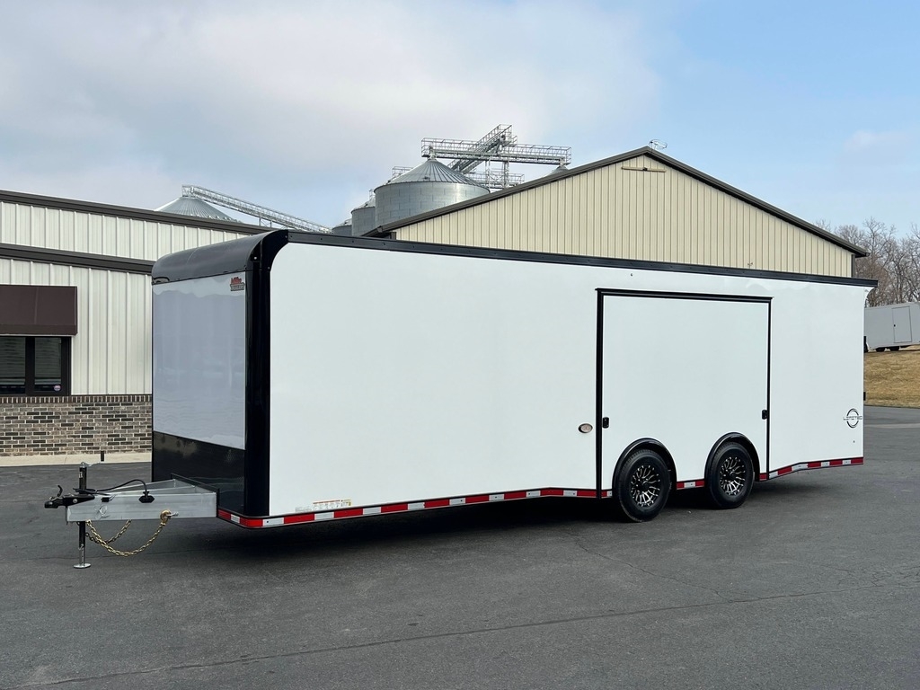 STOCK #: 223329VIN #: 7RXTE2820SA223329· NEW 2025 UNITED ALUMINUM 8.5' X 28' 14K GVWR RACE CAR HAULER ENCLOSED TRAILER W/ PREMIUM ESCAPE DOOR· MODEL: ALIM-8.528TA70· 8.5' WIDE X 28' LONG (27' 8" USABLE FLOOR) X 7' INTERIOR HEIGHT· (6' 11" DOOR HEIGHT CLEARANCE)· GVWR: 14,000 LB· EMPTY WEIGHT: 5,460 LB· EXTERIOR COLOR: WHITE SCREWLESS W/ BLACKOUT· AXLE -· (2) DEXTER 7,000 LB INDEPENDENT TORSION SUSPENSION AXLES· ELECTRIC BRAKES ON ALL WHEELS· E-Z® LUBE HUBS· TIRES -· ST235/80R16G 14-PLY RADIAL TIRES· 16" 8-LUG ALUMINUM WHEELS (CLEAR COATED)· CENTER CAPS & CHROME LUG NUTS· HITCH -· 7-WAY RV MOLDED PLUG· 2-5/16" COUPLER· TONGUE JACK· SAFETY CHAINS· BREAKAWAY KIT W/ CHARGER· FRAME -· REAR WING (SPOILER)· STORAGE COMPARTMENT IN FLOOR· WINCH MOUNT PLATE UNDER FLOOR - FRONT CENTER· ALUMINUM ALL-TUBE FRAME CONSTRUCTION· 8" TRIPLE-TUBE TONGUE - 48" CLEARANCE TO CENTER-BALL· 8" TUBE MAIN FRAME· 16" ON-CENTER FLOOR CROSS MEMBERS· 16" ON-CENTER WALL POSTS· 16" ON-CENTER ROOF BOWS· VENT -· ROOF VENT - BRACED & WIRED FOR FUTURE A/C· INTERIOR -· WHITE VINYL CEILING W/ ANGLED COVE EDGES· 3/8" WHITE VINYL BOARD INTERIOR WALLS· RAISED RUBBER-COIN FLOORING· 3/4" PLYWOOD SUBFLOOR· (4) HEAVY DUTY RECESSED D-RINGS ON FLOOR· 12 VOLT ELECTRICAL -· (2) NOVA 14" L.E.D. ANGLED SCENE LIGHTS ON REAR WING W/ WALL SWITCH AT REAR· (4) VOODOO 40" L.E.D. INTERIOR LIGHTS ON ANGLED COVES W/ WALL SWITCH AT SIDE DOOR· 110 VOLT TO 12 VOLT 55 AMP POWER CONVERTER· DEEP CYCLE MARINE BATTERY IN RECESSED FLOOR BOX - WIRED TO CHARGE CIRCUIT· MIDSHIP AMBER L.E.D. TURN SIGNALS / CLEARANCE LIGHTS· L.E.D. CLEARANCE LIGHTS & TAIL LIGHTS· EXTERIOR -· SCREWLESS .030 SMOOTH ALUMINUM EXTERIOR· 24" ALUMINUM TREAD PLATE STONE GUARD· ONE-PIECE ALUMINUM SEAMLESS ROOF· CAST ALUMINUM UPPER FRONT CORNERS· 4" ALUMINUM TOP RAIL & BOTTOM RAIL· SPREAD AXLES W/ INDIVIDUAL ALUMINUM FENDERETTES· WEATHER GUARD COATING ON FASTENERS· DOOR -· PREMIUM JUMP/ESCAPE DOOR W/ REMOVABLE WHEEL WELL & INTEGRATED STEP - 106" WIDE X 73" HIGH, 6' 5" FROM REAR (8" TIRE HEIGHT ABOVE FLOOR)· 32" RV SIDE ENTRY DOOR W/ RV LOCK/DEADBOLT & ALUMINUM HOLD-BACK· BEAVERTAILED FLOOR FOR E-Z LOADING - 6' LONG / 5" DROP· RAMP REAR DOOR W/ SPRING ASSIST, 3,000 LB LOAD CAPACITY· 95-3/4" WIDE X 83" HIGH RAMP DOOR OPENING· ALUMINUM GRAB HANDLES ON RAMP DOOR· 1' ALL-ALUMINUM END FLAP ON RAMP DOOR· CABINET -· ALUMINUM OVERHEAD CABINET ACROSS FRONT WALL - 16" TALL X 16" DEEP· 110 VOLT ELECTRICAL -· (2) INTERIOR DUPLEX RECEPTACLES· 30 AMP ELECTRICAL PANEL W/ EXTERIOR MOTOR BASE PLUG· 30 AMP RV POWER CORD - 25' LONG W/ TWIST-LOCK PLUG· WARRANTY -· 3 YEAR LIMITED MANUFACTURER'S WARRANTY· 25 YEAR LIMITED FLOOR PLYWOOD WARRANTY· FREIGHT FROM BRISTOL, INDIANA TO HAGERSTOWN, MARYLAND INCLUDED