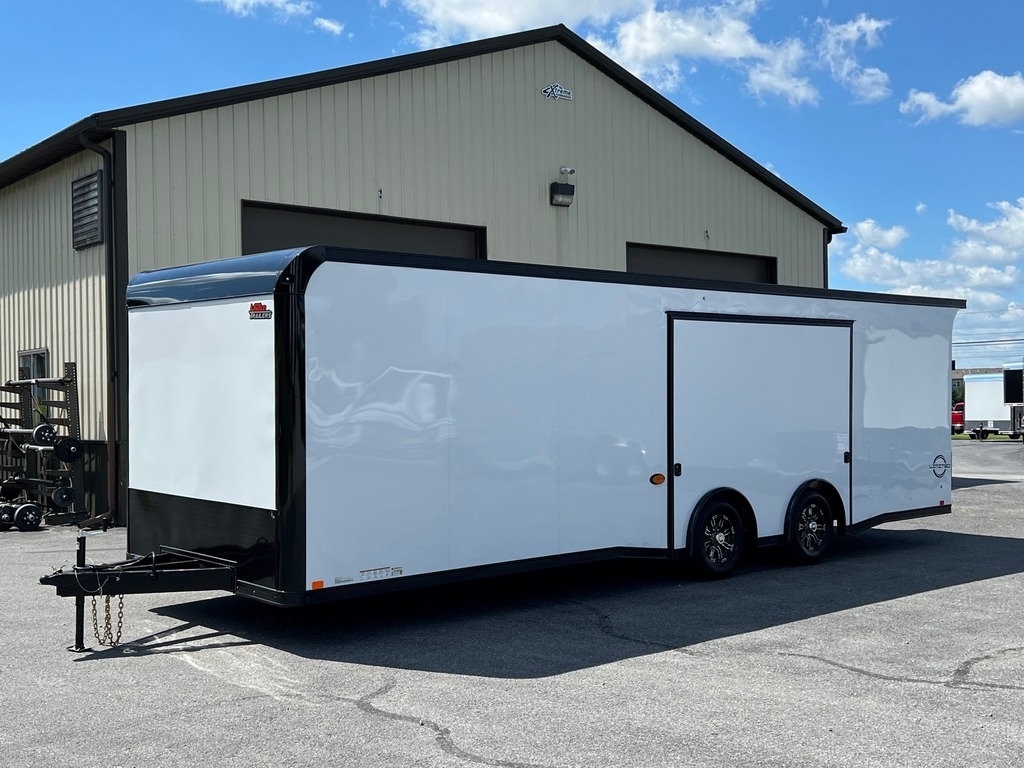 STOCK #: 222918VIN #: 7RXTE2823SA222918· NEW 2025 UNITED LIMITED 8.5' X 28' 14K GVWR RACE CAR HAULER ENCLOSED TRAILER W/ PREMIUM ESCAPE DOOR· MODEL: LIM-8.528TA70· 8.5' WIDE X 28' LONG (25' 4" USABLE FLOOR) X 7' INTERIOR HEIGHT· (6' 11" DOOR HEIGHT CLEARANCE)· GVWR: 14,000 LB· EMPTY WEIGHT: 6,120 LB· EXTERIOR COLOR: WHITE SCREWLESS W/ BLACKOUT· AXLE -· (2) DEXTER 7,000 LB INDEPENDENT TORSION SUSPENSION AXLES· ELECTRIC BRAKES ON ALL WHEELS· E-Z® LUBE HUBS· TIRES -· ST235/80R16G 14-PLY RADIAL TIRES· 16" 8-LUG ALUMINUM WHEELS (CLEAR COATED)· CENTER CAPS & CHROME LUG NUTS· HITCH -· 7-WAY RV MOLDED PLUG· 2-5/16" COUPLER· TONGUE JACK· SAFETY CHAINS· BREAKAWAY KIT W/ CHARGER· FRAME -· REAR WING (SPOILER)· STORAGE COMPARTMENT IN FLOOR· WINCH MOUNT PLATE UNDER FLOOR - FRONT CENTER· STEEL UNI-BODY CONSTRUCTION· TRIPLE-TUBE A-FRAME TONGUE - 48" CLEARANCE TO CENTER-BALL· 8" I-BEAM MAIN FRAME RAILS· 16" ON-CENTER FLOOR CROSS MEMBERS· 16" ON-CENTER WALL POSTS· 16" ON-CENTER ROOF BOWS· UNDERCOATING ON LOWER FRAME· VENT -· ROOF VENT - BRACED & WIRED FOR FUTURE A/C· INTERIOR -· WHITE VINYL CEILING W/ ANGLED COVE EDGES· 3/8" WHITE VINYL BOARD INTERIOR WALLS· RAISED RUBBER-COIN FLOORING· 3/4" PLYWOOD SUBFLOOR· (4) HEAVY DUTY RECESSED D-RINGS ON FLOOR· FOAM SEAL DUST BLOCK TO CLOSE OFF EXTERIOR BOTTOM OF SIDEWALLS· 12 VOLT ELECTRICAL -· (2) NOVA 14" L.E.D. ANGLED SCENE LIGHTS ON REAR WING W/ WALL SWITCH AT REAR· (4) VOODOO 40" L.E.D. INTERIOR LIGHTS ON ANGLED COVES W/ WALL SWITCH AT SIDE DOOR· 110 VOLT TO 12 VOLT 55 AMP POWER CONVERTER· DEEP CYCLE MARINE BATTERY IN RECESSED FLOOR BOX - WIRED TO CHARGE CIRCUIT· CARBON-MONOXIDE DETECTOR (BATTERY OPERATED)· MIDSHIP AMBER L.E.D. TURN SIGNALS / CLEARANCE LIGHTS· L.E.D. CLEARANCE LIGHTS & TAIL LIGHTS· EXTERIOR -· SCREWLESS .030 SMOOTH ALUMINUM EXTERIOR· 24" ALUMINUM TREAD PLATE STONE GUARD· ONE-PIECE ALUMINUM SEAMLESS ROOF· CAST ALUMINUM UPPER FRONT CORNERS· 4" ALUMINUM TOP RAIL & BOTTOM RAIL· SPREAD AXLES W/ INDIVIDUAL ALUMINUM FENDERETTES· WEATHER GUARD COATING ON FASTENERS· DOOR -· PREMIUM JUMP/ESCAPE DOOR W/ REMOVABLE WHEEL WELL & INTEGRATED STEP - 106" WIDE X 73" HIGH, 6' 5" FROM REAR (8" TIRE HEIGHT ABOVE FLOOR)· 32" RV SIDE ENTRY DOOR W/ RV LOCK/DEADBOLT & ALUMINUM HOLD-BACK· BEAVERTAILED FLOOR FOR E-Z LOADING - 6' LONG / 5" DROP· RAMP REAR DOOR W/ SPRING ASSIST, 3,000 LB LOAD CAPACITY· 95-3/4" WIDE X 83" HIGH RAMP DOOR OPENING· ALUMINUM GRAB HANDLES ON RAMP DOOR· 1' ALL-ALUMINUM END FLAP ON RAMP DOOR· CABINETS -· ALUMINUM DELUXE CABINET PACKAGE ACROSS FRONT WALL - 36" HIGH X 28" DEEP L-SHAPED BASE CABINET, 16" TALL X 16" DEEP STRAIGHT OVERHEAD CABINET, & 24" WIDE WARDROBE W/ CLOTHES ROD· - BASE CABINET CENTER DOORS RAISED W/ WINCH CABLE MOUSE HOLE· - MILL FINISH ALUMINUM WORK BENCH TOP· 110 VOLT ELECTRICAL -· (2) INTERIOR DUPLEX RECEPTACLES· 30 AMP ELECTRICAL PANEL W/ EXTERIOR MOTOR BASE PLUG· 30 AMP RV POWER CORD - 25' LONG W/ TWIST-LOCK PLUG· WARRANTY -· 3 YEAR LIMITED MANUFACTURER'S WARRANTY· 25 YEAR LIMITED FLOOR PLYWOOD WARRANTY· FREIGHT FROM BRISTOL, INDIANA TO HAGERSTOWN, MARYLAND INCLUDED