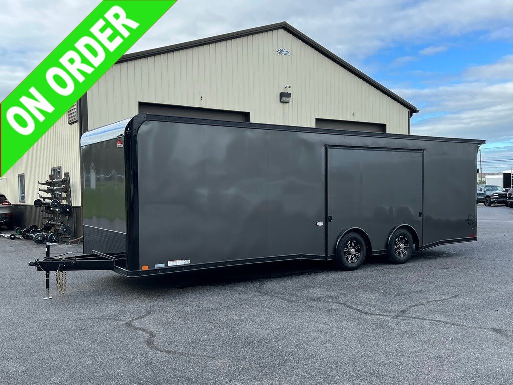 STOCK #: 222949VIN #: 7RXTE2823SA222949· NEW 2026 UNITED LIMITED 8.5' X 28' 14K GVWR RACE CAR HAULER ENCLOSED TRAILER W/ PREMIUM ESCAPE DOOR· MODEL: LIM-8.528TA70· 8.5' WIDE X 28' LONG (27' 8" USABLE FLOOR) X 7' INTERIOR HEIGHT· (6' 11" DOOR HEIGHT CLEARANCE)· GVWR: 14,000 LB· EMPTY WEIGHT: 5,880 LB· EXTERIOR COLOR: BATTLESHIP GRAY SCREWLESS W/ BLACKOUT· AXLE -· (2) DEXTER 7,000 LB INDEPENDENT TORSION SUSPENSION AXLES· ELECTRIC BRAKES ON ALL WHEELS· E-Z® LUBE HUBS· TIRES -· ST235/80R16G 14-PLY RADIAL TIRES· 16" 8-LUG ALUMINUM WHEELS (CLEAR COATED)· CENTER CAPS & CHROME LUG NUTS· HITCH -· 7-WAY RV MOLDED PLUG· 2-5/16" COUPLER· TONGUE JACK· SAFETY CHAINS· BREAKAWAY KIT W/ CHARGER· FRAME -· REAR WING (SPOILER)· STORAGE COMPARTMENT IN FLOOR· WINCH MOUNT PLATE UNDER FLOOR - FRONT CENTER· STEEL UNI-BODY CONSTRUCTION· TRIPLE-TUBE A-FRAME TONGUE - 48" CLEARANCE TO CENTER-BALL· 8" I-BEAM MAIN FRAME RAILS· 16" ON-CENTER FLOOR CROSS MEMBERS· 16" ON-CENTER WALL POSTS· 16" ON-CENTER ROOF BOWS· UNDERCOATING ON LOWER FRAME· VENT -· ROOF VENT - BRACED & WIRED FOR FUTURE A/C· INTERIOR -· WHITE VINYL CEILING W/ ANGLED COVE EDGES· 3/8" WHITE VINYL BOARD INTERIOR WALLS· RAISED RUBBER-COIN FLOORING· 3/4" PLYWOOD SUBFLOOR· (4) HEAVY DUTY RECESSED D-RINGS ON FLOOR· FOAM SEAL DUST BLOCK TO CLOSE OFF EXTERIOR BOTTOM OF SIDEWALLS· 12 VOLT ELECTRICAL -· (2) NOVA 14" L.E.D. ANGLED SCENE LIGHTS ON REAR WING W/ WALL SWITCH AT REAR· (4) VOODOO 40" L.E.D. INTERIOR LIGHTS ON ANGLED COVES W/ WALL SWITCH AT SIDE DOOR· 110 VOLT TO 12 VOLT 55 AMP POWER CONVERTER· DEEP CYCLE MARINE BATTERY IN RECESSED FLOOR BOX - WIRED TO CHARGE CIRCUIT· MIDSHIP AMBER L.E.D. TURN SIGNALS / CLEARANCE LIGHTS· L.E.D. CLEARANCE LIGHTS & TAIL LIGHTS· EXTERIOR -· SCREWLESS .030 SMOOTH ALUMINUM EXTERIOR· 24" ALUMINUM TREAD PLATE STONE GUARD· ONE-PIECE ALUMINUM SEAMLESS ROOF· CAST ALUMINUM UPPER FRONT CORNERS· 4" ALUMINUM TOP RAIL & BOTTOM RAIL· SPREAD AXLES W/ INDIVIDUAL ALUMINUM FENDERETTES· WEATHER GUARD COATING ON FASTENERS· DOOR -· PREMIUM JUMP/ESCAPE DOOR W/ REMOVABLE WHEEL WELL & INTEGRATED STEP - 106" WIDE X 73" HIGH, 6' 5" FROM REAR (8" TIRE HEIGHT ABOVE FLOOR)· 32" RV SIDE ENTRY DOOR W/ RV LOCK/DEADBOLT & ALUMINUM HOLD-BACK· BEAVERTAILED FLOOR FOR E-Z LOADING - 6' LONG / 5" DROP· RAMP REAR DOOR W/ SPRING ASSIST, 3,000 LB LOAD CAPACITY· 95-3/4" WIDE X 83" HIGH RAMP DOOR OPENING· ALUMINUM GRAB HANDLES ON RAMP DOOR· 1' ALL-ALUMINUM END FLAP ON RAMP DOOR· CABINET -· ALUMINUM OVERHEAD CABINET ACROSS FRONT WALL - 16" TALL X 16" DEEP· 110 VOLT ELECTRICAL -· (2) INTERIOR DUPLEX RECEPTACLES· 30 AMP ELECTRICAL PANEL W/ EXTERIOR MOTOR BASE PLUG· 30 AMP RV POWER CORD - 25' LONG W/ TWIST-LOCK PLUG· WARRANTY -· 3 YEAR LIMITED MANUFACTURER'S WARRANTY· 25 YEAR LIMITED FLOOR PLYWOOD WARRANTY· FREIGHT FROM BRISTOL, INDIANA TO HAGERSTOWN, MARYLAND INCLUDED