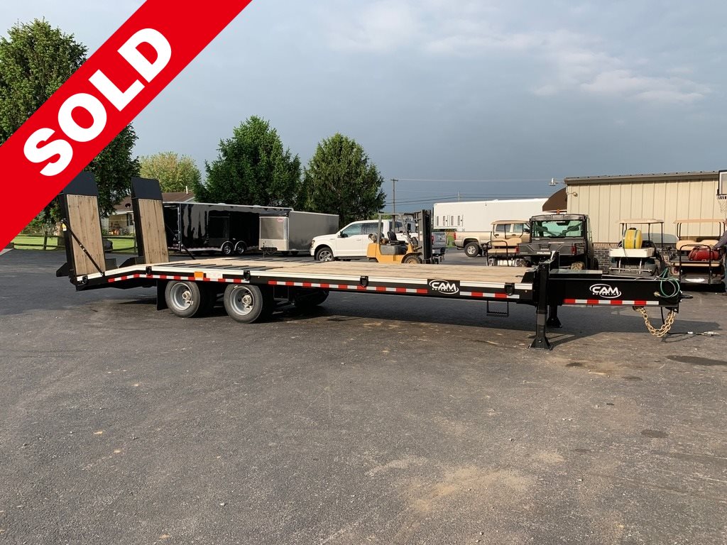 STOCK # 20CAM827TANEW 2019 CAM SUPERLINE 27' 20-TON HD DECKOVER FLATBED EQUIPMENT TRAILERMODEL: 20CAM827TAGVWR: 51,750 LBS.EMPTY WEIGHT: 9,445 LBS.PAYLOAD: 42,305 LBS.AXLE CAPACITY: 22,500 LBS.DECK LENGTH: 27' (22' FLAT, 5' B/T)DECK WIDTH: 102"DECK HEIGHT: 35"MAIN FRAME & TONGUE: 14" I-BEAM @ 22#CROSSMEMBERS: 5" CHANNEL @ 6.7#RADIAL TIRE SIZE: 235/75R17.5LRH 16-PLYBRAKES: AIR W/ ABS***30" X 80" AIR POWERED RAMPS - WOOD FILLED***STANDARD FEATURES:STEEL PLATED TONGUEDEXTER OIL BATH AXLESHUTCH H-9700 SUSPENSION3-LEAF AXLE SPRINGS(50,000 LB. CAPACITY)SPRING PARK BRAKE ON ALL AXLESHI-TENSILE STEEL CONSTRUCTIONFULL PIERCED BEAM CONSTRUCTIONDUAL 50K 2-SPEED JACKS (BOLT-ON)2" NOMINAL OAK DECKSILVER WHEELSLED LIGHTS - RUBBER MOUNTEDTOOL BOXMUD FLAPS1" D-RING TIE DOWNS (12)STEPS (4)ADJUSTABLE PINTLE HITCHSEALED WIRING HARNESSSEALED 7-PIN PLUG W/ARCTIC FLEX WHIPSAFETY CHAINS (5/8" HIGH TEST)EPOXY PRIMERPPG POLYURETHANE PAINT FINISHCOLOR: BLACK3 YEAR WARRANTY*PLUS 12% F.E.T.
