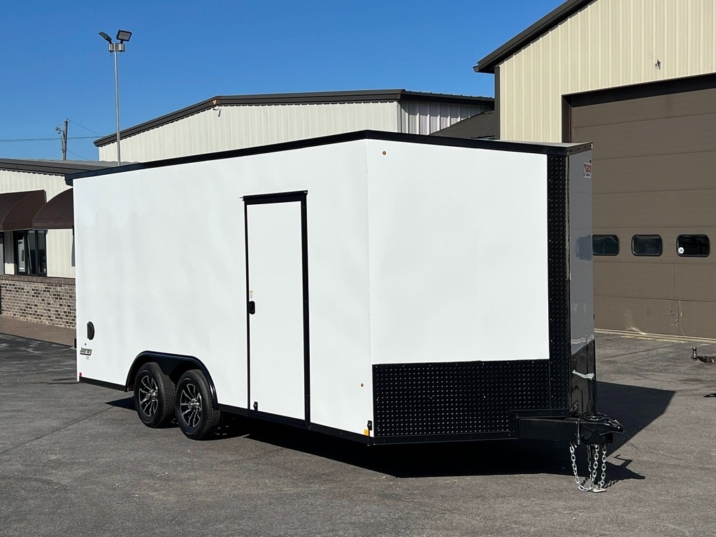 STOCK #: 145179VIN #: 5JWPE1825TM145179· NEW 2026 PACE AMERICAN JOURNEY SE 8.5' X 18' V-NOSE RAMP DOOR CAR HAULER ENCLOSED TRAILER· MODEL: KP-SEC10218-070· 8.5' WIDE X 18' LONG + 2-1/2' V-NOSE X 7' INTERIOR HEIGHT· (6' 11" DOOR HEIGHT CLEARANCE)· GVWR: 7,000 LB· EMPTY WEIGHT: 3,184 LB· PAYLOAD CAPACITY: 3,816 LB· EXTERIOR COLOR: WHITE SCREWLESS W/ BLACKOUT· - AXLE -· (2) 3,500 LB 4" DROP SPRING SUSPENSION AXLES· ELECTRIC BRAKES ON ALL WHEELS· SUPERLUBE HUBS· - TIRES -· ST205/75R15C 6-PLY RADIAL TIRES· 15" 5-LUG WHEELS· - HITCH -· 7-WAY RV MOLDED PLUG· 2-5/16" COUPLER· TONGUE JACK· SAFETY CHAINS· BREAKAWAY KIT W/ CHARGER· - FRAME -· STEEL UNI-BODY CONSTRUCTION· 6" TRIPLE-TUBE A-FRAME TONGUE· 6" BOX TUBE MAIN FRAME· 16" ON-CENTER FLOOR CROSS MEMBERS· 16" ON-CENTER WALL POSTS· 16" ON-CENTER ROOF BOWS· UNDERCOATING ON LOWER FRAME· - VENTS -· (2) FLOW THRU SIDEWALL VENTS· - INTERIOR -· 3/8" DRYMAX INTERIOR WALLS· 3/4" DRYMAX FLOOR· (6) HEAVY DUTY RECESSED D-RINGS· - 12 VOLT ELECTRICAL -· (2) 12 VOLT L.E.D. DOME LIGHTS W/ WALL SWITCH AT SIDE DOOR· L.E.D. TAIL LIGHTS & CLEARANCE LIGHTS· - EXTERIOR -· SCREWLESS .030 ALUMINUM EXTERIOR· ONE-PIECE ALUMINUM SEAMLESS ROOF· ALUMINUM TREAD PLATE STONE GUARD· ALUMINUM FENDER FLARES· 2-3/4" ALUMINUM TOP RAIL & BOTTOM RAIL· - DOOR -· 36" RV SIDE DOOR W/ RV LOCK/DEADBOLT & METAL HOLD-BACK· RAMP REAR DOOR W/ SPRING ASSIST & END FLAP, 3,000 LB LOAD CAPACITY - 93-3/4" WIDE X 83" HIGH OPENING (2- CAMLOCKS ON DOOR)· BEAVERTAILED FLOOR FOR E-Z LOADING· - WARRANTY -· 3 YEAR LIMITED MANUFACTURER'S WARRANTY· FREIGHT FROM MANUFACTURER TO HAGERSTOWN, MARYLAND INCLUDED