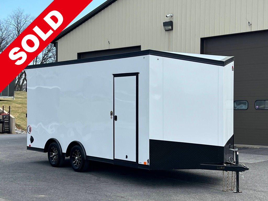 STOCK #: 224432VIN #: 7RXTE1824TA224432· NEW 2026 UNITED UJ 8.5' X 18' V-NOSE AUTO / ATV / UTV / MOTO HAULER RAMP DOOR ENCLOSED CARGO TRAILER· MODEL: UJ-8.518TA35· 8.5' WIDE X 18' LONG + 2-1/2' V-NOSE X 7' 6" INTERIOR HEIGHT· (6' 10" DOOR HEIGHT CLEARANCE)· GVWR: 7,000 LB· EMPTY WEIGHT: 3,100 LB· EXTERIOR COLOR: WHITE SCREWLESS W/ BLACKOUT· AXLE -· (2) DEXTER 3,500 LB INDEPENDENT TORSION SUSPENSION AXLES· ELECTRIC BRAKES ON ALL WHEELS· E-Z® LUBE HUBS· TIRES -· ST205/75R15D 8-PLY RADIAL TIRES· 15" 5-LUG ALUMINUM WHEELS (CLEAR COATED)· HITCH -· 7-WAY RV MOLDED PLUG· 2-5/16" COUPLER· TONGUE JACK· SAFETY CHAINS· BREAKAWAY KIT W/ CHARGER· FRAME -· REAR WING (SPOILER)· STEEL UNI-BODY CONSTRUCTION· 4" TRIPLE-TUBE A-FRAME TONGUE· 4" BOX TUBE MAIN FRAME· 16" ON-CENTER FLOOR CROSS MEMBERS· 16" ON-CENTER WALL POSTS· 16" ON-CENTER ROOF BOWS· UNDERCOATING ON LOWER FRAME· VENTS -· (2) FLOW THRU SIDEWALL VENTS· INTERIOR -· 3/8" PLYWOOD INTERIOR WALLS· 3/4" PLYWOOD FLOORING· (4) HEAVY DUTY RECESSED D-RINGS· 12-VOLT -· 12 VOLT L.E.D. DOME LIGHT W/ WALL SWITCH AT SIDE DOOR· L.E.D. TAIL LIGHTS & CLEARANCE LIGHTS· EXTERIOR -· SCREWLESS .030 SMOOTH ALUMINUM EXTERIOR· ONE-PIECE ALUMINUM SEAMLESS ROOF· ALUMINUM TREAD PLATE STONE GUARD· 4" ALUMINUM TOP RAIL & BOTTOM RAIL· ALUMINUM FENDER FLARES· WEATHER GUARD COATING ON FASTENERS· DOOR -· 32" RV SIDE DOOR W/ RV LOCK/DEADBOLT & ALUMINUM HOLD-BACK· RAMP REAR DOOR W/ SPRING ASSIST & END FLAP, 3,000 LB LOAD CAPACITY - 95-3/4" WIDE X 82" HIGH OPENING· CAMLOCKS ON RAMP DOOR· WARRANTY -· 3 YEAR LIMITED MANUFACTURER'S WARRANTY· FREIGHT FROM BRISTOL, INDIANA TO HAGERSTOWN, MARYLAND INCLUDED