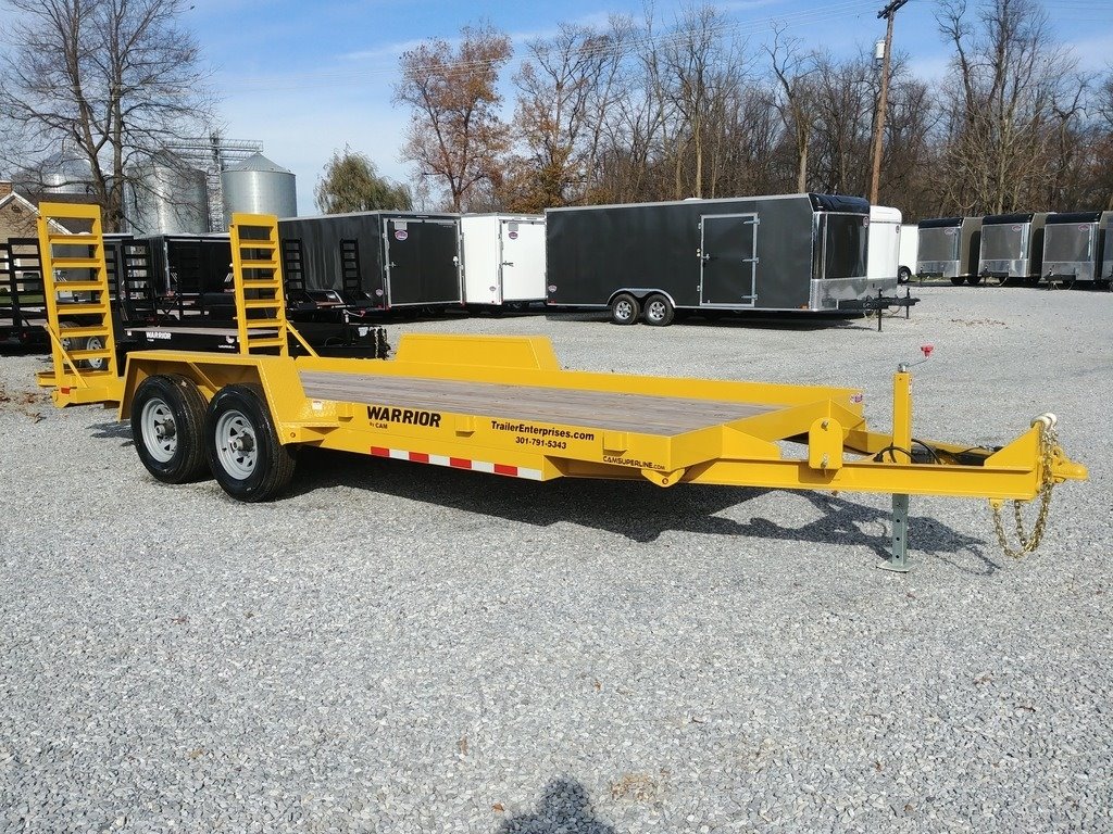 STOCK # 4EC18·NEW 2020 CAM SUPERLINE 18' 10K GVWR FLATBED LANDSCAPE EQUIPMENT TRAILER·BED SIZE: 82.5" WIDE X 18' LONG·GVWR: 9,996 LB·EMPTY WEIGHT: 2,300 LB·PAYLOAD CAPACITY: 7,696 LB·DECK HEIGHT: 20”·OVERALL WIDTH: 102”·5' LONG LADDER RAMPS W/LEGS·6" X 4" X 5/16" ANGLE MAIN FRAME·3" CHANNEL CROSS MEMBERS·5” CHANNEL @ 6.7# TONGUE·(10) STAKE POCKETS·2” P/T PINE DECKING·DIAMOND PLATE FENDERS·2-5/16" ADJUSTABLE COUPLER·7K BOLT-ON DROP LEG JACK·SAFETY CHAINS·7-WAY RV PLUG·BREAKAWAY BATTERY KIT·SEALED WIRING HARNESS·L.E.D. RUBBER MOUNTED LIGHTS·DEXTER 5,200LB E-Z® LUBE AXLES·ELECTRIC BRAKES ON ALL WHEELS·SLIPPER SPRING SUSPENSION·15” 6-LUG WHEELS·ST225/75R15D 8-PLY RADIAL TIRES·SPARE TIRE MOUNT·EPOXY PRIMER·PPG POLYURETHANE PAINT FINISH·3 YEAR WARRANTY