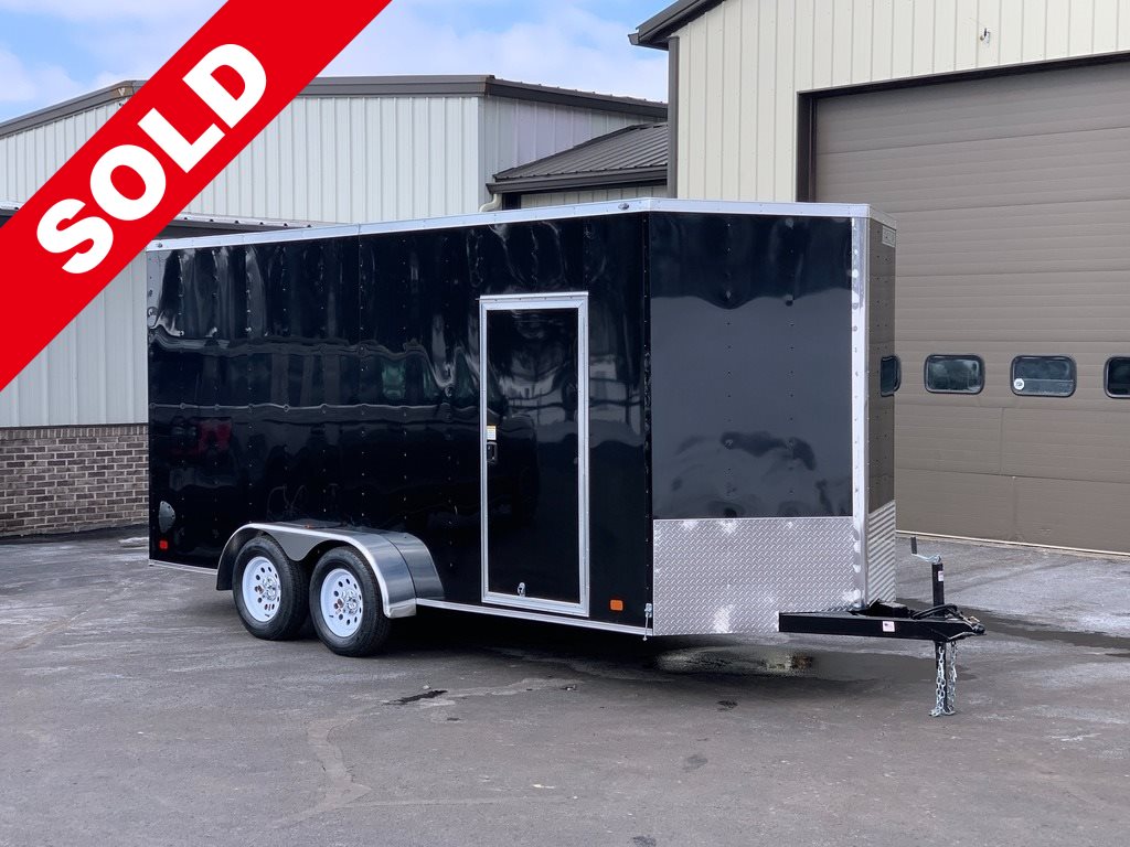 STOCK #: 024910VIN #: 564BE1627NR024910· NEW 2022 BULLET 7' X 16’ X-HEIGHT V-NOSE ENCLOSED CARGO TRAILER· 7' WIDE X 16' LONG STRAIGHT BOX + 2' V-NOSE X 7' INTERIOR HEIGHT· (6’ 7” DOOR HEIGHT CLEARANCE)· RAMP REAR DOOR W/ SPRING ASSIST & FLAP, 2,000 LB LOAD CAPACITY - 74-3/4” WIDE X 79” HIGH OPENING (2- STANDARD CAMLOCKS ON DOOR)· GVWR: 7,000 LB· EMPTY WEIGHT: 2,530 LB· COLOR: BLACK· (2) DEXTER 3,500 LB 4" DROP SPRING SUSPENSION AXLES· ELECTRIC BRAKES ON ALL WHEELS· E-Z® LUBE HUBS· 15" 5-LUG WHEELS· ST205/75R15C 6-PLY RADIAL TIRES· 7-WAY RV PLUG· 2-5/16" COUPLER· TONGUE JACK· SAFETY CHAINS· BREAKAWAY KIT W/ CHARGER· STEEL UNI-BODY CONSTRUCTION· 4" MAIN FRAME & TONGUE· 16” ON-CENTER FLOOR CROSS MEMBERS, WALL POSTS, & ROOF BOWS· 3/8” INTERIOR WALL LINER· 3/4" FLOORING· 12-VOLT L.E.D. DOME LIGHT· L.E.D. TAIL & CLEARANCE LIGHTS· .030 ALUMINUM SCREWED EXTERIOR· ONE-PIECE ALUMINUM SEAMLESS ROOF· ALUMINUM OUTSIDE FENDERS· ALUMINUM TREAD PLATE STONE GUARD· (2) FLOW-THRU SIDEWALL VENTS· 32” RV SIDE DOOR· 1 YEAR LIMITED MANUFACTURER’S WARRANTY· FREIGHT FROM VIRGINIA TO HAGERSTOWN, MARYLAND INCLUDED