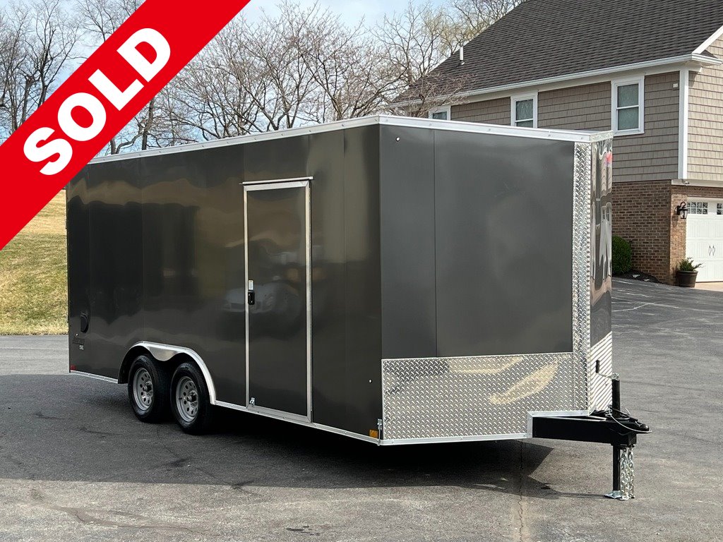 STOCK #: 132046VIN #: 5JWPC1823SM132046· NEW 2025 PACE JOURNEY SE 8.5' X 18' V-NOSE RAMP DOOR CAR HAULER ENCLOSED TRAILER· MODEL: KP-SEC10218-070· 8.5' WIDE X 18' LONG + 2-1/2' V-NOSE X 7' INTERIOR HEIGHT· (6' 11" DOOR HEIGHT CLEARANCE)· GVWR: 7,000 LB· EMPTY WEIGHT: 2,931 LB· EXTERIOR COLOR: CHARCOAL METALLIC SCREWLESS· AXLE -· (2) 3,500 LB 4" DROP SPRING SUSPENSION AXLES· ELECTRIC BRAKES ON ALL WHEELS· SUPERLUBE HUBS· TIRES -· ST205/75R15C 6-PLY RADIAL TIRES· 15" 5-LUG WHEELS· HITCH -· 7-WAY RV MOLDED PLUG· 2-5/16" COUPLER· TONGUE JACK· SAFETY CHAINS· BREAKAWAY KIT W/ CHARGER· FRAME -· STEEL UNI-BODY CONSTRUCTION· 6" TRIPLE-TUBE A-FRAME TONGUE· 6" BOX TUBE MAIN FRAME· 16" ON-CENTER FLOOR CROSS MEMBERS· 16" ON-CENTER WALL POSTS· 16" ON-CENTER ROOF BOWS· UNDERCOATING ON LOWER FRAME· VENTS -· (2) FLOW THRU SIDEWALL VENTS· INTERIOR -· 3/8" DRYMAX INTERIOR WALLS· 3/4" DRYMAX FLOOR· (6) HEAVY DUTY RECESSED D-RINGS· 12-VOLT -· (2) 12 VOLT L.E.D. DOME LIGHTS W/ WALL SWITCH AT SIDE DOOR· L.E.D. TAIL LIGHTS & CLEARANCE LIGHTS· EXTERIOR -· SCREWLESS .030 SMOOTH ALUMINUM EXTERIOR· ONE-PIECE ALUMINUM SEAMLESS ROOF· ALUMINUM TREAD PLATE STONE GUARD· ALUMINUM FENDER FLARES· 2-3/4" ALUMINUM TOP RAIL & BOTTOM RAIL· DOOR -· 36" RV SIDE DOOR W/ RV LOCK/DEADBOLT & METAL HOLD-BACK· RAMP REAR DOOR W/ SPRING ASSIST & END FLAP, 3,000 LB LOAD CAPACITY - 93-3/4" WIDE X 83" HIGH OPENING (2- CAMLOCKS ON DOOR)· BEAVERTAILED FLOOR FOR E-Z LOADING· WARRANTY -· 3 YEAR LIMITED MANUFACTURER'S WARRANTY· FREIGHT FROM MANUFACTURER TO HAGERSTOWN, MARYLAND INCLUDED