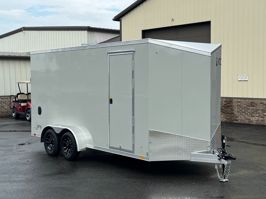 STOCK #: 236416VIN #: 5JX1C1621TF236416· NEW 2026 ATC STō 400 7' X 16' ALUMINUM V-NOSE ATV / UTV / MOTO HAULER RAMP DOOR ENCLOSED CARGO TRAILER· MODEL: ST400_B70701600+2-2T3.5K· 7' WIDE X 16' LONG + 2' V-NOSE X 7' INTERIOR HEIGHT· (6' 8" DOOR HEIGHT CLEARANCE)· GVWR: 7,700 LB· EMPTY WEIGHT: 2,086 LB· PAYLOAD CAPACITY: 5,614 LB· EXTERIOR COLOR: DOVE GRAY SCREWLESS· - AXLE -· (2) DEXTER 3,500 LB INDEPENDENT TORSION SUSPENSION AXLES· ELECTRIC BRAKES ON ALL WHEELS· E-Z® LUBE HUBS· - TIRES -· ST205/75R15D 8-PLY RADIAL TIRES· 15" 5-LUG ALUMINUM WHEELS (CLEAR COATED)· - HITCH -· 7-WAY RV MOLDED PLUG· 2-5/16" COUPLER· TONGUE JACK· SAFETY CHAINS· BREAKAWAY KIT W/ CHARGER· - FRAME -· REAR WING (SPOILER)· ALUMINUM ALL-TUBE FRAME CONSTRUCTION· 6" TUBE A-FRAME TONGUE· 5" TUBE MAIN FRAME· 16" ON-CENTER FLOOR CROSS MEMBERS· 16" ON-CENTER WALL POSTS· 16" ON-CENTER ROOF BOWS· - VENTS -· (2) FLOW THRU SIDEWALL VENTS· - INTERIOR -· 3/4" DRYMAX FLOOR· 3/8" DRYMAX INTERIOR WALLS· - 12 VOLT ELECTRICAL -· (2) 12 VOLT L.E.D. LOADING LIGHTS W/ WALL SWITCH AT REAR· (2) 12 VOLT L.E.D. 49" SLIMLINE INTERIOR LIGHTS W/ WALL SWITCH AT SIDE DOOR· L.E.D. TAIL LIGHTS & CLEARANCE LIGHTS· - EXTERIOR -· SCREWLESS .030 ALUMINUM EXTERIOR· ONE-PIECE ALUMINUM SEAMLESS ROOF· ALUMINUM TREAD PLATE STONE GUARD· ALUMINUM FENDERS· 3" ALUMINUM TOP RAIL & BOTTOM RAIL· - DOOR -· 32" RV SIDE DOOR W/ RV LOCK/DEADBOLT & ALUMINUM HOLD-BACK· RAMP REAR DOOR W/ SPRING ASSIST & END FLAP, 2,000 LB LOAD CAPACITY - 79-3/4" WIDE X 80" HIGH OPENING· ALUMINUM CAMLOCKS ON RAMP DOOR· - WARRANTY -· 3 YEAR LIMITED MANUFACTURER'S WARRANTY· FREIGHT FROM NAPPANEE, INDIANA TO HAGERSTOWN, MARYLAND INCLUDED