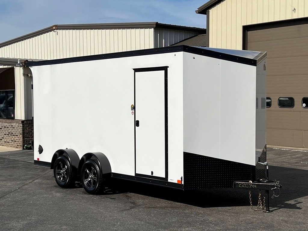 STOCK #: 223526VIN #: 7RXTE1626SA223526· NEW 2025 UNITED UJ 7' X 16' V-NOSE ATV / UTV / MOTO HAULER RAMP DOOR ENCLOSED CARGO TRAILER· MODEL: UJ-716TA35-8.5· 7' WIDE X 16' LONG + 2' V-NOSE X 7' INTERIOR HEIGHT· (6' 8" DOOR HEIGHT CLEARANCE)· GVWR: 7,000 LB· EMPTY WEIGHT: 2,460 LB· EXTERIOR COLOR: WHITE SCREWLESS W/ BLACKOUT· AXLE -· (2) DEXTER 3,500 LB INDEPENDENT TORSION SUSPENSION AXLES· ELECTRIC BRAKES ON ALL WHEELS· E-Z® LUBE HUBS· TIRES -· ST205/75R15D 8-PLY RADIAL TIRES· 15" 5-LUG ALUMINUM WHEELS (CLEAR COATED)· HITCH -· 7-WAY RV MOLDED PLUG· 2-5/16" COUPLER· TONGUE JACK· SAFETY CHAINS· BREAKAWAY KIT W/ CHARGER· FRAME -· REAR WING (SPOILER)· STEEL UNI-BODY CONSTRUCTION· 4" TRIPLE-TUBE A-FRAME TONGUE· 4" BOX TUBE MAIN FRAME· 16" ON-CENTER FLOOR CROSS MEMBERS· 16" ON-CENTER WALL POSTS· 16" ON-CENTER ROOF BOWS· UNDERCOATING ON LOWER FRAME· VENTS -· (2) FLOW THRU SIDEWALL VENTS· INTERIOR -· 3/8" PLYWOOD INTERIOR WALLS· 3/4" PLYWOOD FLOORING· (4) HEAVY DUTY RECESSED D-RINGS· 12-VOLT -· 12 VOLT L.E.D. DOME LIGHT W/ WALL SWITCH AT SIDE DOOR· L.E.D. TAIL LIGHTS & CLEARANCE LIGHTS· EXTERIOR -· SCREWLESS .030 SMOOTH ALUMINUM EXTERIOR· ONE-PIECE ALUMINUM SEAMLESS ROOF· ALUMINUM TREAD PLATE STONE GUARD· 4" ALUMINUM TOP RAIL & BOTTOM RAIL· ALUMINUM FENDERS· WEATHER GUARD COATING ON FASTENERS· DOOR -· 32" RV SIDE DOOR W/ RV LOCK/DEADBOLT & ALUMINUM HOLD-BACK· RAMP REAR DOOR W/ SPRING ASSIST & END FLAP, 3,000 LB LOAD CAPACITY - 78-3/4" WIDE X 80" HIGH OPENING· CAMLOCKS ON RAMP DOOR· WARRANTY -· 3 YEAR LIMITED MANUFACTURER'S WARRANTY· FREIGHT FROM BRISTOL, INDIANA TO HAGERSTOWN, MARYLAND INCLUDED