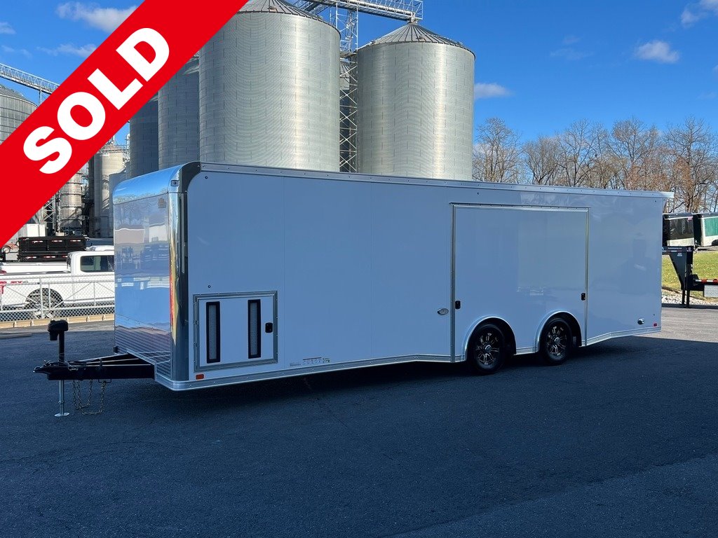 STOCK #: 223644VIN #: 7RXTE2828SA223644· NEW 2025 UNITED PREMIER 8.5' X 28' 10K GVWR RACE CAR HAULER ENCLOSED TRAILER W/ PREMIUM ESCAPE DOOR· MODEL: PREM-8.528TA52· 8.5' WIDE X 28' LONG (25' 4" USABLE FLOOR) X 7' INTERIOR HEIGHT· (6' 11" DOOR HEIGHT CLEARANCE)· GVWR: 9,990 LB· EMPTY WEIGHT: 6,400 LB· EXTERIOR COLOR: WHITE SCREWLESS· AXLE -· (2) DEXTER 5,200 LB INDEPENDENT TORSION SUSPENSION AXLES· ELECTRIC BRAKES ON ALL WHEELS· E-Z® LUBE HUBS· TIRES -· ST235/80R16G 14-PLY RADIAL TIRES· 16" 8-LUG ALUMINUM WHEELS (CLEAR COATED)· CENTER CAPS & LUG NUTS· HITCH -· 7-WAY RV MOLDED PLUG· 2-5/16" COUPLER· ELECTRIC TONGUE JACK W/ DROP-LEG· SAFETY CHAINS· BREAKAWAY KIT W/ CHARGER· FRAME -· REAR WING (SPOILER)· STORAGE COMPARTMENT IN FLOOR· WINCH MOUNT PLATE UNDER FLOOR - FRONT CENTER· STEEL UNI-BODY CONSTRUCTION· TRIPLE-TUBE A-FRAME TONGUE - 48" CLEARANCE TO CENTER-BALL· 8" I-BEAM MAIN FRAME RAILS· 16" ON-CENTER FLOOR CROSS MEMBERS· 16" ON-CENTER WALL POSTS· 16" ON-CENTER ROOF BOWS· UNDERCOATING ON LOWER FRAME· VENT -· ROOF VENT - BRACED & WIRED FOR FUTURE A/C· INTERIOR -· SCREWLESS ALUMINUM CEILING W/ ANGLED COVE EDGES· SCREWLESS ALUMINUM INTERIOR WALLS OVER 3/8" PLYWOOD· MARINE-GRADE CARPET PROTECTIVE WAINSCOTING 3' UP ON INTERIOR WALLS· RAISED RUBBER-COIN FLOORING· 3/4" PLYWOOD SUBFLOOR· (8) HEAVY DUTY RECESSED D-RINGS ON FLOOR· FOAM SEAL DUST BLOCK TO CLOSE OFF EXTERIOR BOTTOM OF SIDEWALLS· 12 VOLT ELECTRICAL -· STEREO W/ (2) INTERIOR SPEAKERS & (2) EXTERIOR SPEAKERS - BLUETOOTH / AM / FM· (4) HUX 14" L.E.D. CEILING LIGHTS· (1) HUX 14" L.E.D. WORKBENCH / CABINET LIGHT· (2) 3-WAY WALL SWITCHES FOR INTERIOR LIGHTS - (1) AT SIDE DOOR & (1) AT REAR· (2) NOVA 14" L.E.D. ANGLED SCENE LIGHTS ON REAR WING W/ WALL SWITCH AT REAR· (2) NOVA 14" L.E.D. ANGLED SCENE LIGHTS ON CURB SIDE W/ WALL SWITCH AT SIDE DOOR· 110 VOLT TO 12 VOLT 55 AMP POWER CONVERTER· DEEP CYCLE MARINE BATTERY IN RECESSED FLOOR BOX - WIRED TO CHARGE CIRCUIT· CARBON-MONOXIDE DETECTOR (BATTERY OPERATED)· MIDSHIP AMBER L.E.D. TURN SIGNALS / CLEARANCE LIGHTS· L.E.D. ANGLED BACK-UP (DOCKING) LIGHTS· L.E.D. CLEARANCE LIGHTS & TAIL LIGHTS· EXTERIOR -· SCREWLESS .030 SMOOTH ALUMINUM EXTERIOR· 24" ALUMINUM TREAD PLATE STONE GUARD· ONE-PIECE ALUMINUM SEAMLESS ROOF· POLISHED CAST ALUMINUM UPPER FRONT CORNERS· POLISHED ALUMINUM FRONT CORNERS & TOP WRAP· 4" ALUMINUM TOP RAIL & BOTTOM RAIL· SPREAD AXLES W/ INDIVIDUAL ALUMINUM FENDERETTES· WEATHER GUARD COATING ON FASTENERS· DOOR -· 36" WIDE X 30" HIGH RV GENERATOR DOOR W/ VENTS & RV LOCK/DEADBOLT· PREMIUM JUMP / ESCAPE DOOR W/ REMOVABLE WHEEL WELL & INTEGRATED STEP - 106" WIDE X 73" HIGH, 6' 5" FROM REAR (8" TIRE HEIGHT ABOVE FLOOR)· 32" RV SIDE ENTRY DOOR W/ RV LOCK/DEADBOLT & ALUMINUM HOLD-BACK· BEAVERTAILED FLOOR FOR E-Z LOADING - 6' LONG / 5" DROP· RAMP REAR DOOR W/ SPRING ASSIST, 3,000 LB LOAD CAPACITY· 95-3/4" WIDE X 83" HIGH RAMP DOOR OPENING· (2) RECESSED CAMLOCKS IN RAMP DOOR· 1' ALL-ALUMINUM END FLAP ON RAMP DOOR· CABINETS -· ALUMINUM DELUXE CABINET PACKAGE ACROSS FRONT WALL - 36" HIGH X 28" DEEP L-SHAPED BASE CABINET, 16" TALL X 16" DEEP STRAIGHT OVERHEAD CABINET, & 24" WIDE WARDROBE W/ HELMET SHELF & CLOTHES ROD· - BASE CABINET CENTER DOORS RAISED W/ WINCH CABLE MOUSE HOLE· - MILL FINISH ALUMINUM WORK BENCH TOP· 110 VOLT ELECTRICAL -· (4) INTERIOR DUPLEX RECEPTACLES· (1) EXTERIOR GFI RECEPTACLE· 50 AMP ELECTRICAL PANEL W/ EXTERIOR MOTOR BASE PLUG· 50 AMP RV POWER CORD - 25' LONG W/ TWIST-LOCK PLUG· WARRANTY -· 3 YEAR LIMITED MANUFACTURER'S WARRANTY· 25 YEAR LIMITED FLOOR PLYWOOD WARRANTY· FREIGHT FROM BRISTOL, INDIANA TO HAGERSTOWN, MARYLAND INCLUDED