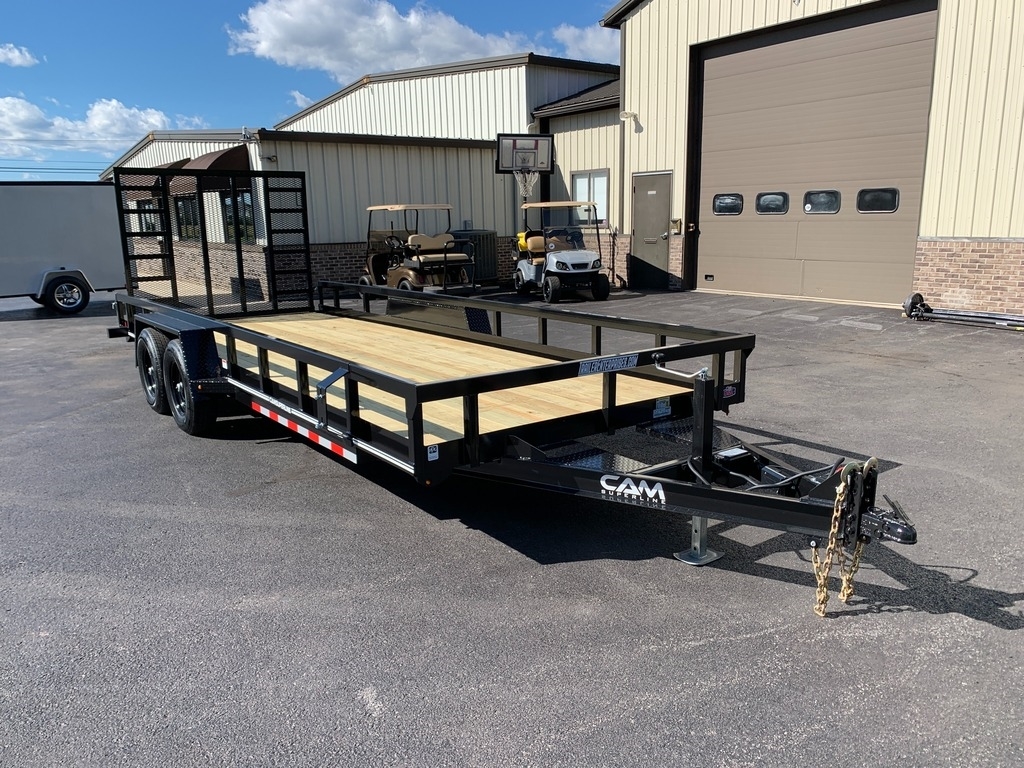 STOCK # STP-7X18TA-10K· NEW 2026 CAM SUPERLINE COMMERCIAL-DUTY LANDSCAPE / UTILITY TRAILER· BED SIZE: 81.5" WIDE X 18' LONG· GVWR: 9,900 LB· EMPTY WEIGHT: 2,440 LB· 3" X 2" TUBE TOP RAIL (13" HIGH)· 2" X 2" TUBE UPRIGHTS· HEAVY-DUTY TREAD PLATE FENDERS· 2" X 6" PRESSURE TREATED DECKING· FRONT & REAR BOARD RETAINERS· 5' FOLD-FLAT HEAVY-DUTY SPRING-ASSIST LANDSCAPE RAMP· SELF-RETAINED GATE PINS· 7K TOP-WIND SET-BACK JACK (TO CLEAR PICKUP TAILGATE)· SEALED LED LIGHTS· PROTECTED WIRING· GEL-FILLED ELECTRICAL CONNECTORS· 5,200LB E-Z LUBE AXLES· ELECTRIC BRAKES ON ALL WHEELS· SPRING SUSPENSION· SPARE TIRE MOUNT· 15" 6-LUG WHEELS· ST225/75R15D 8-PLY RADIAL TIRES· 3 YEAR LIMITED WARRANTY