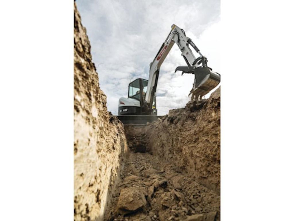 The minimal tail swing E55 compact excavator delivers the performance and comfort features to take productivity to the next level.