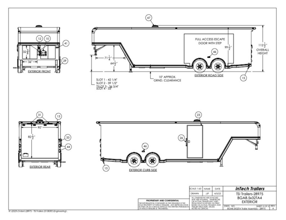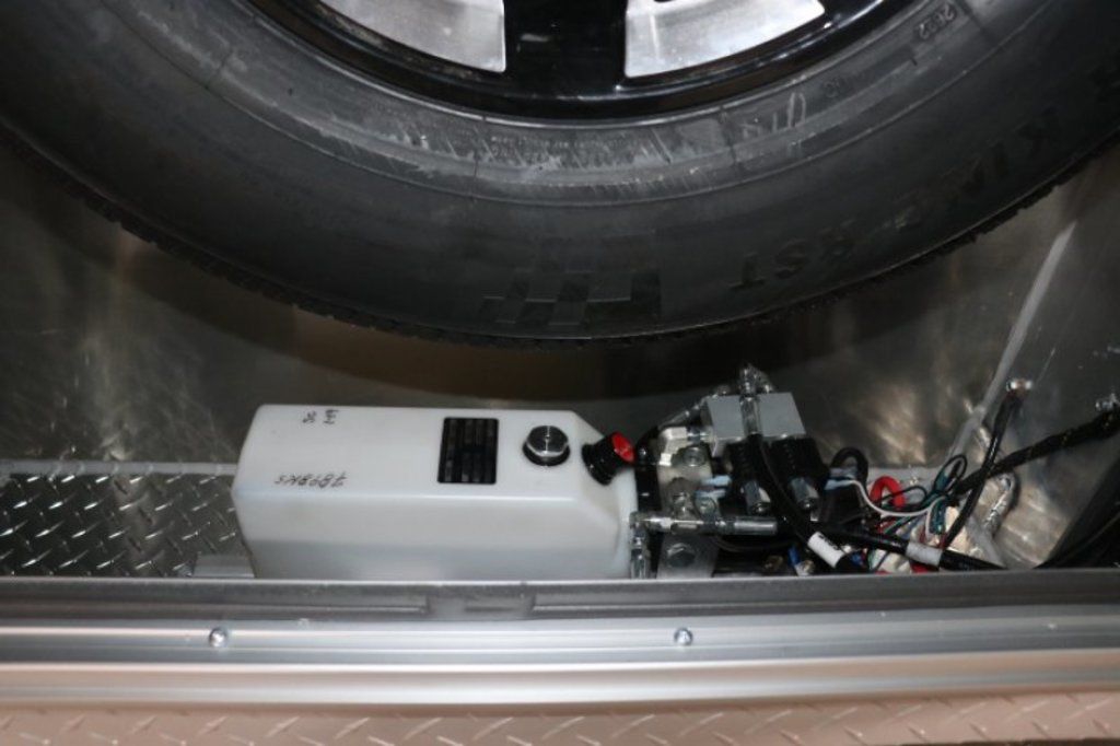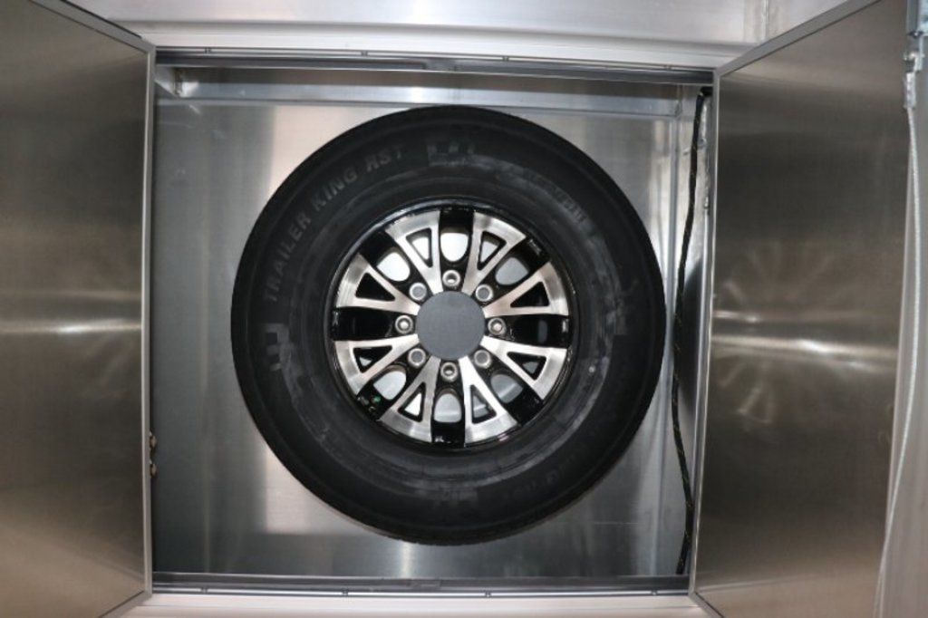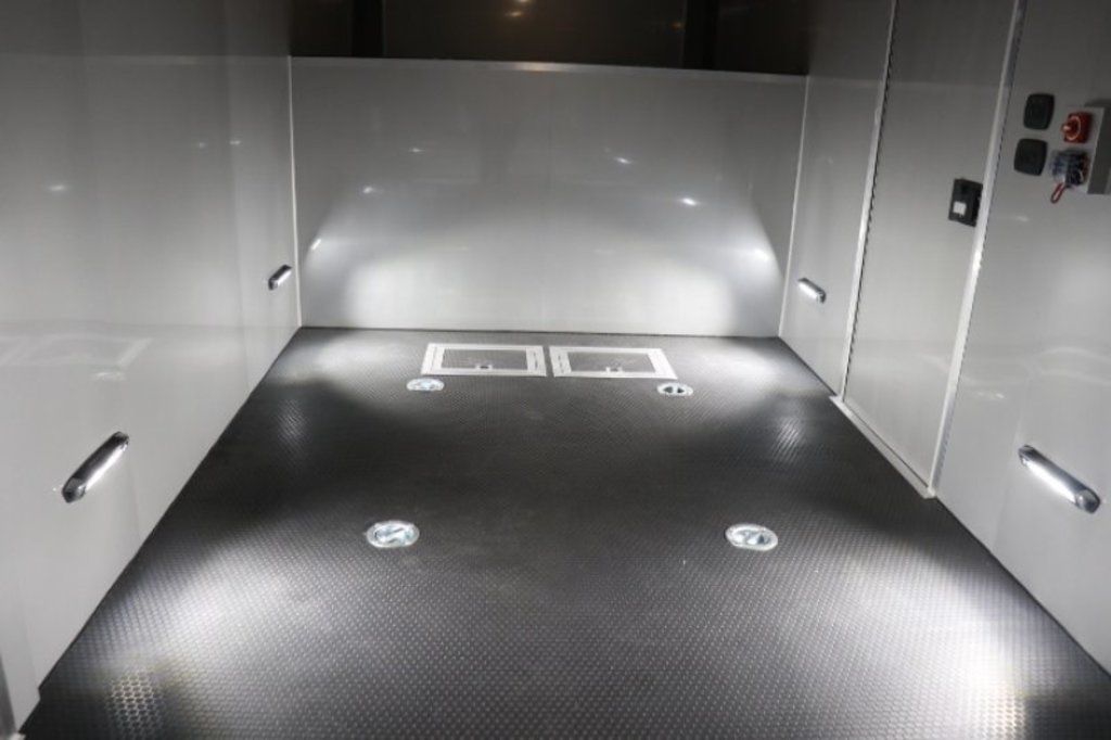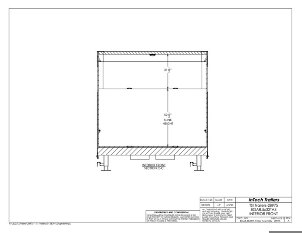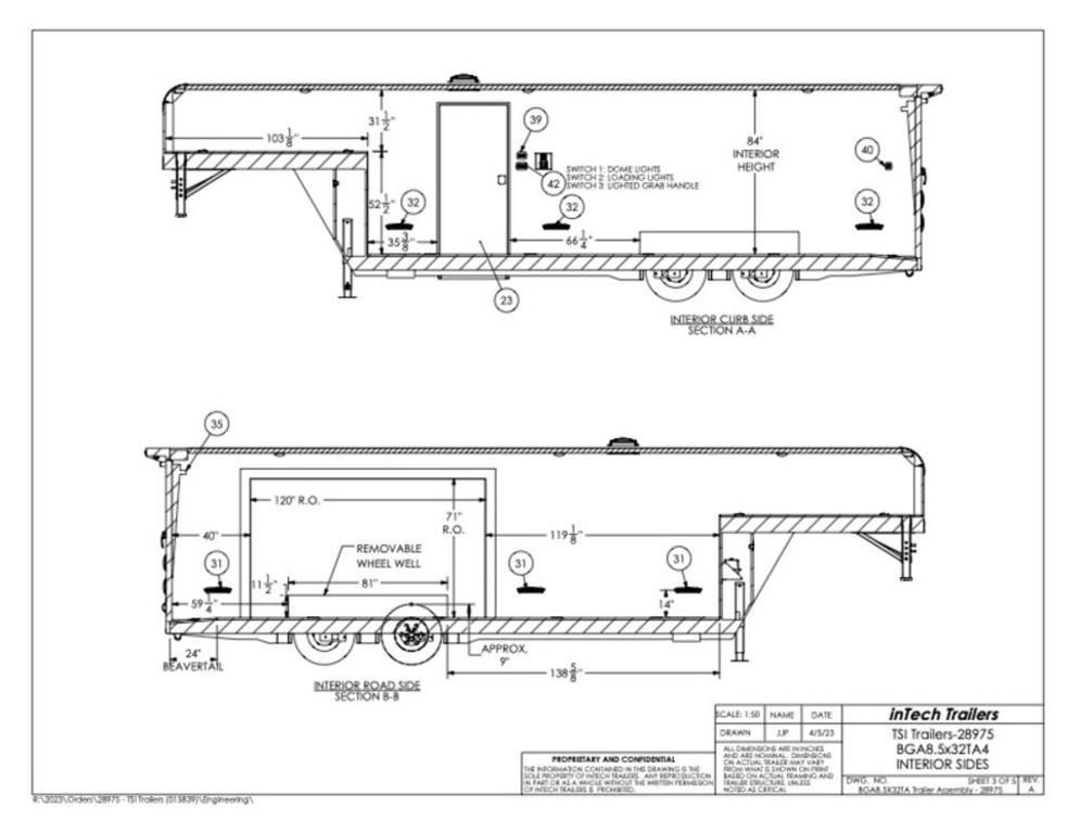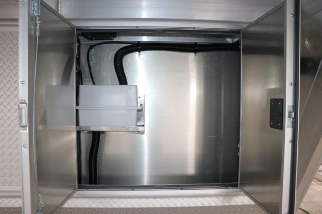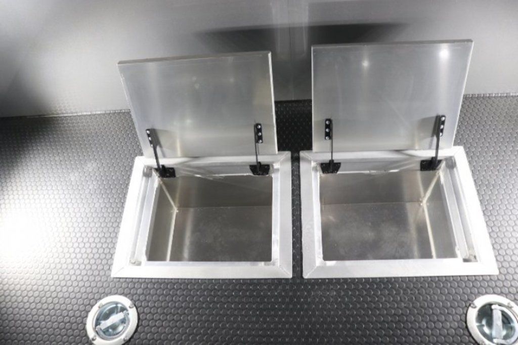 This is an example of a prior sold unit. We'd be happy to order you a duplicate of this trailer. Please inquire about lead times for custom ordered inTech Trailers.- Dual Post Hydraulic Landing Gear- Spare Tire Storage in Riser Compartment- Full Access Escape Door 10'x6'- Lighted Grab Handle- Stainless Steel Paddle Latches- 5' Aluminum Ramp Extension- 12V Deep Cycle Battery- 2 - in floor battery compartments- Upgrade to Panelite Clearance & Tail Lights- Panelite Brake Lights- Side Mount LED Turn Signals- 6 - 12V Surface Mount LED 13" Tie Down Lights- Extruded Aluminum Ramp- Black Coin Floor- Screwless Aluminum Walls & Ceiling- 4 - 5000# D-Rings in bunk- 10 - 6000# Swivel D-Rings in floor- Upgrade to Polished Cast Corners w/ Mirror Finish Stainless Steel Vertical and Radius- Mirror Finish Stainless Steel Rear Header and Post- Lowered Side Skirt w/ Reverse Beavertail Design- Color Matched Rear Spoiler