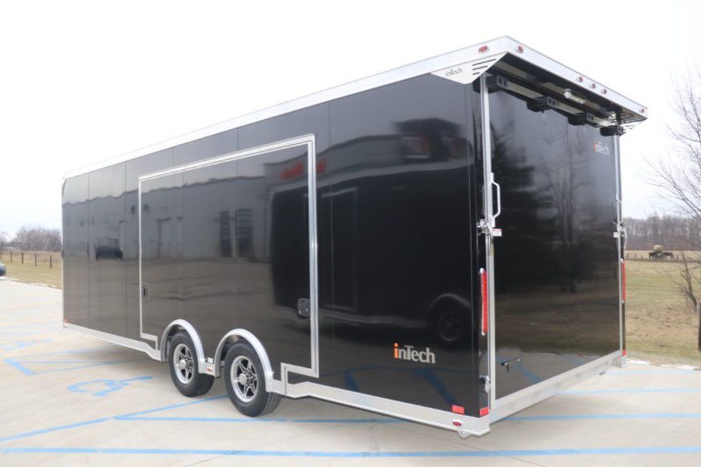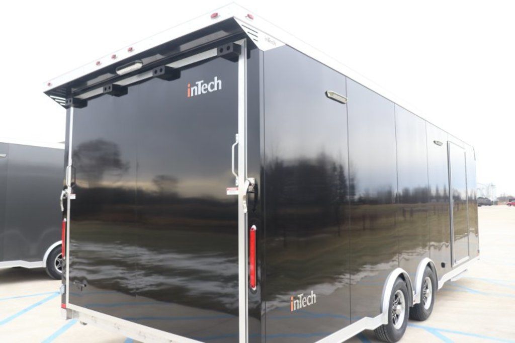 2026 24' Black inTech Lite Trailer w/Full Access Escape Door. Featuring Black Anodized Int Pkg, 4' Ramp Ext, Power Jack, Airline Track Tie-down and more. Call today. 903-482-9335 Features: Tandem 5200# Axles 7' Int Height .040 Screwless/Rivetless Aluminum Exterior -Black .030 Screwless/Rivetless Aluminum Interior -Silver Extruded Aluminum Floor & Ramp w/4' Ramp Extension Full Access Escape Door 10' X 6' w/Removeable Wheelbox Black Anodized Interior Package 8' Upper Cabinets w/Top Hinged Doors -Silver 8' Base Cabinet -Silver Black HDPE Countertop 2 - Rows of Aluminum Airline Track Installed 18" Tie Down Strap Hangers w/Carpet Behind 34" Carpet Wainscot 48" Side Entry Door w/Slide Out Aluminum Step Winch Plate for Future Winch Installation 30Amp Electrical & LED Lights Insulated Walls & Ceiling Recessed D-Rings 1 - Manual Roof Vent 4' Beavertail Aluminum Wheels Wall Mounted Spare Wheel & Tire 24" ATP Stoneguard Extended Tongue w/3500# Power Jack Installed Toward Rear of Tongue for Additional Clearance ATP Tongue Cover Polished Cast Aluminum Corners Stainless Steel High Polish Front Verticals & Radius Rear Paddle Latch Rear Spoiler Rear Caster Wheels Black Anodized Interior Package - Interior Door Trims, Upper and Lower Cabinet Trim, J-Rail on Cove, J-Rail on Bottom of Sidewall Metal, J-Rail on Spring Box, J-Rail for Carpeted Areas Give us a call today to learn more. 903-48-9335 travis@flyingamotorsports.com Financing and Delivery available. WE ARE RACERS LIKE YOU" Flying A Motorsports The #1 Intech Dealer Leading the Motorsports Transportation Industry - Since 1988