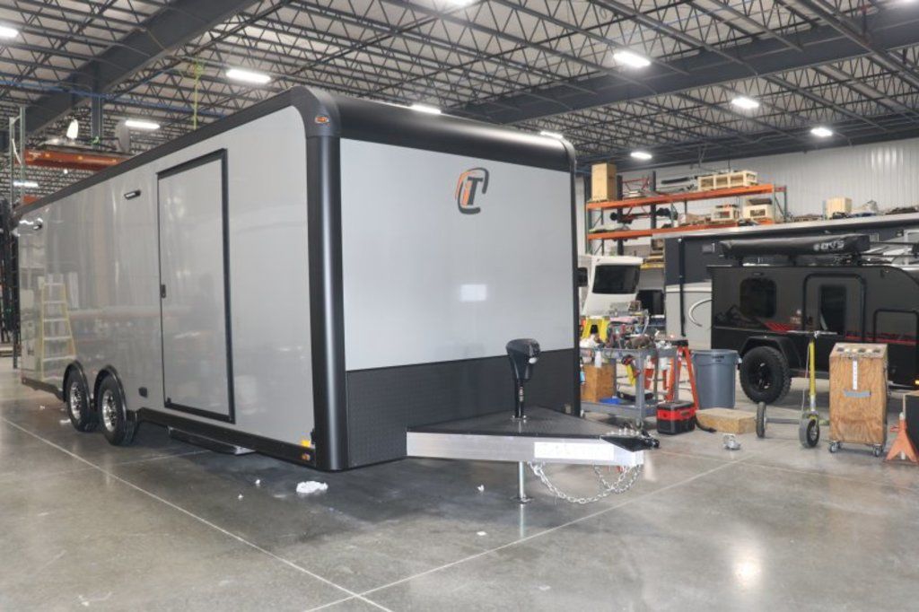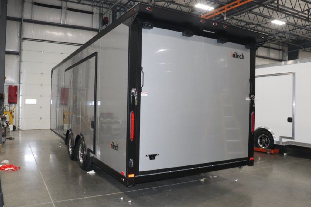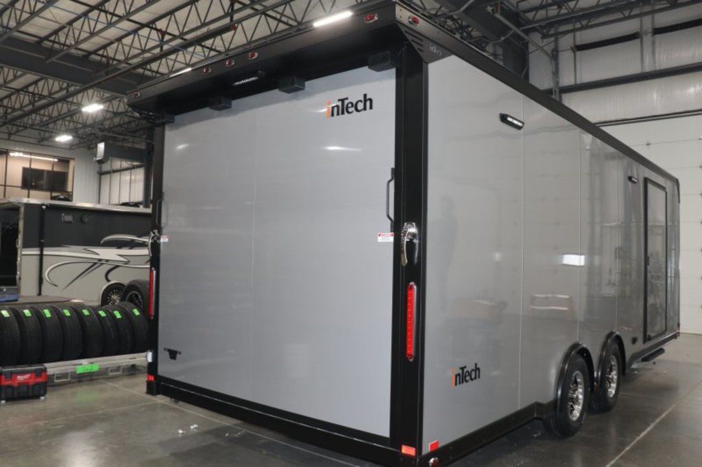 2026 24' Silver Intech Lite Trailer w/Full Access Escape Door Featuring Black Exterior Trim, Black Interior, Power Jack, Airline Tie-Down and more. Call today. 903-482-9335 *ON ORDER options and selections may vary, photos of similar trailer. Features: Tandem 5200# Spread Axles 7' Int Height .040 Screwless/Rivetless Aluminum Exterior -Silver .030 Screwless/Rivetless Aluminum Interior -Silver Black Anodized Exterior Package & Black Anodized Interior Package Extruded Aluminum Floor & Ramp w/4' Ramp Extension Full Access Escape Door - 10' x 6' w/Removeable Wheelbox 8' Upper Cabinets w/Top Hinged Doors -Silver 8' Straight Base Cabinet -Silver Black HDPE Countertop 2 - Rows of Aluminum Airline Track Installed on Main Floor Recessed D-Rings 34" Carpet Wainscot 48" Side Entry Door w/Slide Out Aluminum Step Winch Plate for Future Winch Installation Insulated Walls & Ceiling 1 - Manual Roof Vent Aluminum Wheels Wall Mounted Spare Wheel & Tire 24" ATP Stoneguard ATP Tongue Cover Extended Tongue w/3500# Power Jack Installed Toward Rear of Tongue for Additional Clearance Rear Paddle Latch Rear Spoiler Rear Caster Wheels Black Anodized Exterior Package: ATP Stonguard on Front of Trailer, Entrance Step, Exterior Door Trim, Exterior Fenders, Upper & Lower Rub Rails, T-Trim & Angle Around Rear Ramp Door, Rear Ramp Door Grab Handles, Matte Black Rear Header & Posts, Matte Black Front Verticals & Radius, Black Powdercoated Cast Corners, & Rear Spoiler Black Anodized Interior Package: Interior Door Trims - Upper and Lower Cabinet Trim, J-Rail on Cove, J-Rail on Bottom of Sidewall Metal, J-Rail on Spring Box, & J-Rail for Carpeted Areas *ON ORDER options and selections may vary, photos of similar trailer. Give us a call today to learn more. 903-482-9335 travis@flyingamotorsports.com Financing and Delivery available. WE ARE RACERS LIKE YOU" Flying A Motorsports The #1 Intech Dealer Leading the Motorsports Transportation Industry - Since 1988