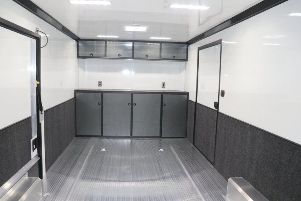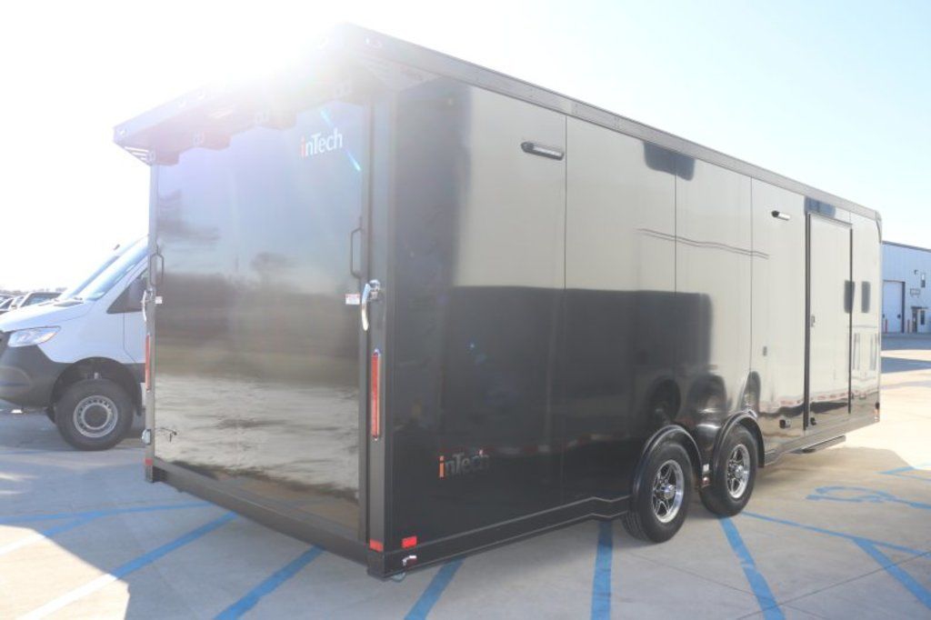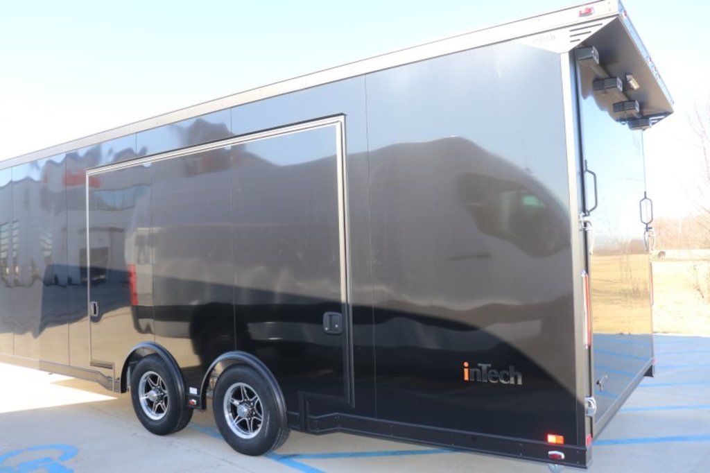 IN TRANSIT 2026 24' Intech Lite Black Trailer Featuring Full Access Escape Door, Int & Ext Black Trim Package, Power Jack, Airline Tie-Down and more. Call today. 800-222-4004 Features: Tandem 5200# Spread Axles 7' Int Height .040 Screwless/Rivetless Aluminum Exterior -Black .030 Screwless/Rivetless Aluminum Interior -White Black Anodized Exterior & Interior Package Extruded Aluminum Floor & Ramp w/4' Ramp Extension Full Access Escape Door - 10' x 6' w/Removeable Wheelbox 8' Upper Cabinets w/Top Hinged Doors -Med Charoal 8' Straight Base Cabinet -Med Charcoal Black HDPE Countertop 2 - Rows of Aluminum Airline Track Installed on Main Floor Recessed D-Rings 34" Carpet Wainscot 18" Wide Tie Down Strap Hangers w/Carpet Behind 48" Side Entry Door w/Slide Out Aluminum Step Winch Plate for Future Winch Installation Insulated Walls & Ceiling Black Anodized Interior Package - Interior Door Trims, Upper and Lower Cabinet Trim, J-Rail on Cove, J-Rail on Bottom of Sidewall Metal, J-Rail on Spring Box, J-Rail for Carpeted Areas 1 - Manual Roof Vent Aluminum Wheels Wall Mounted Spare Wheel & Tire 24" ATP Stoneguard ATP Tongue Cover Extended Tongue w/3500# Power Jack Installed Toward Rear of Tongue for Additional Clearance Rear Paddle Latch Rear Spoiler Rear Caster Wheels Black Anodized Exterior Package: ATP Stonguard on Front of Trailer, Entrance Step, Exterior Door Trim, Exterior Fenders, Upper & Lower Rub Rails, T-Trim & Angle Around Rear Ramp Door, Rear Ramp Door Grab Handles, Matte Black Rear Header & Posts, Matte Black Front Verticals & Radius, Black Powdercoated Cast Corners, & Rear Spoiler *ON ORDER options and selections may vary, photos of similar trailer. Give us a call today to learn more. 903-482-9335 travis@flyingamotorsports.com Financing and Delivery available. WE ARE RACERS JUST YOU" Flying A Motorsports The #1 Intech Dealer Leading the Motorsports Transportation Industry - Since 1988